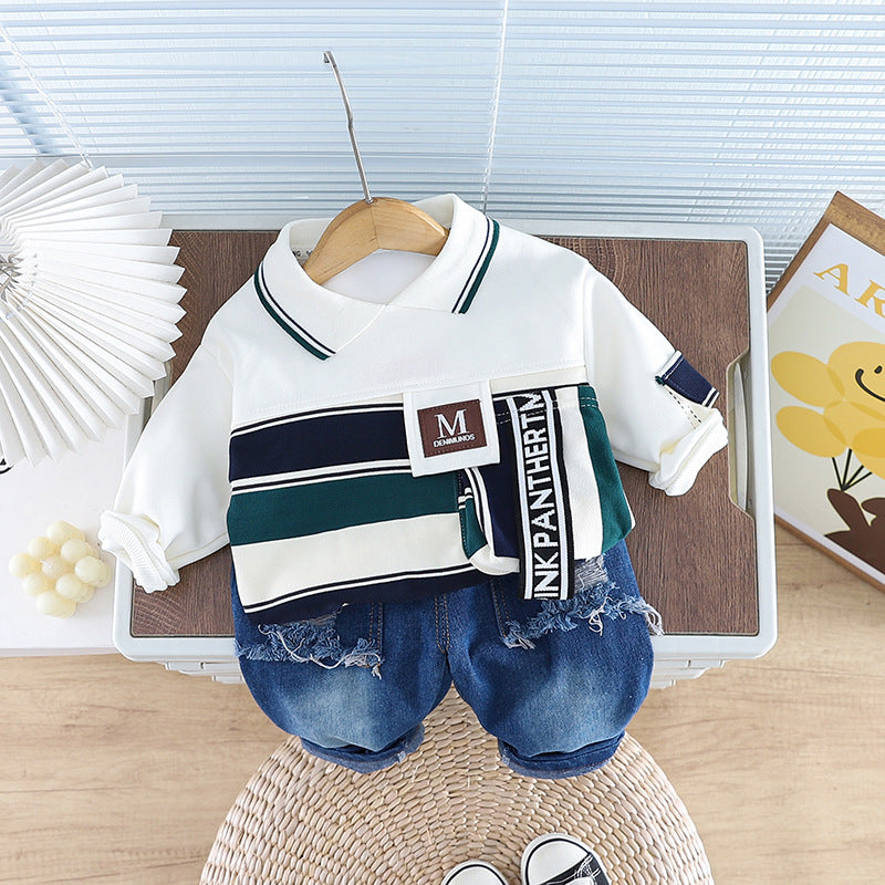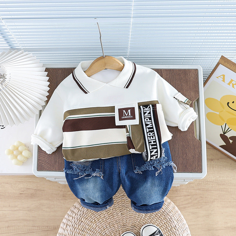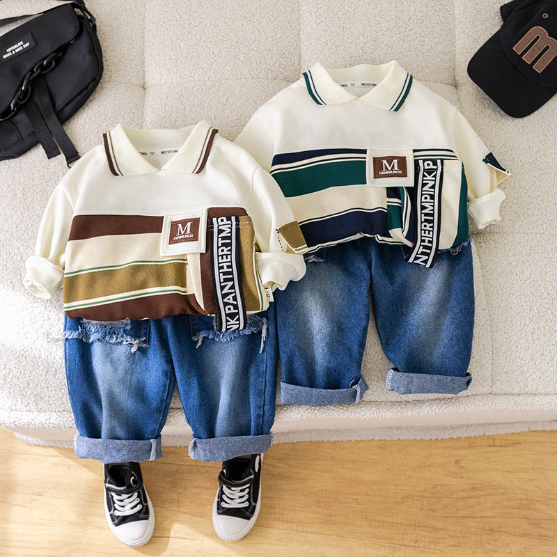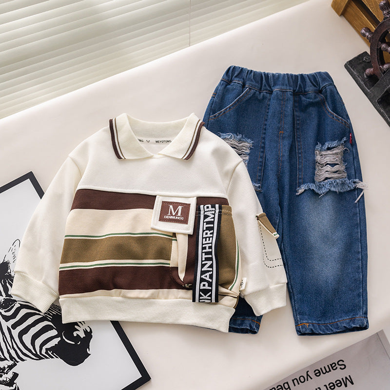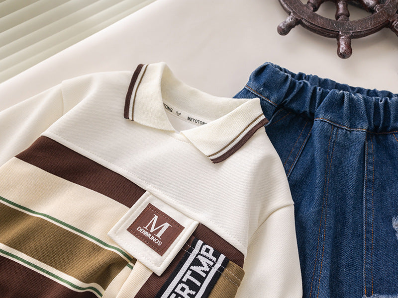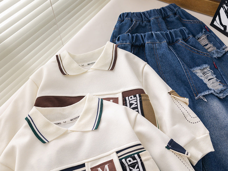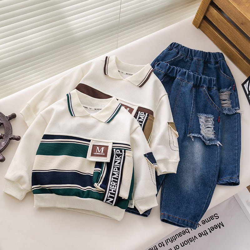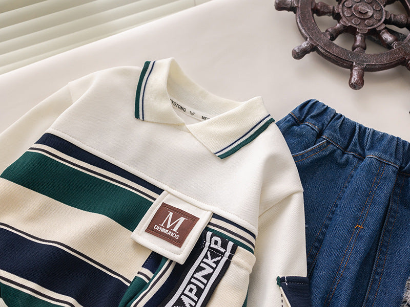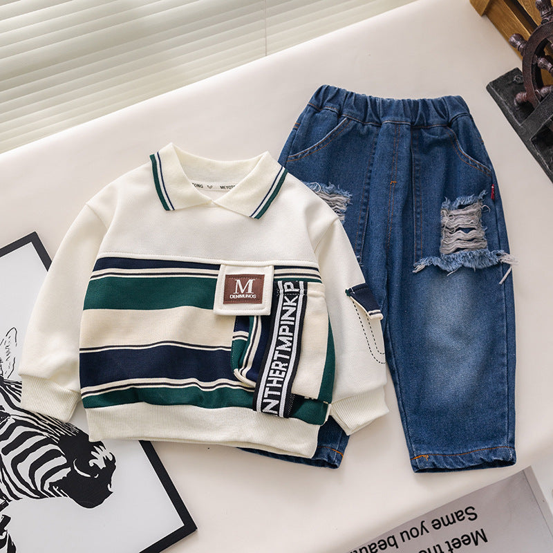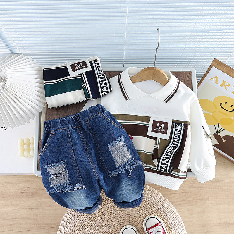 طقم ولادي قطعتين ( بلوزة + بنطلون جينز)