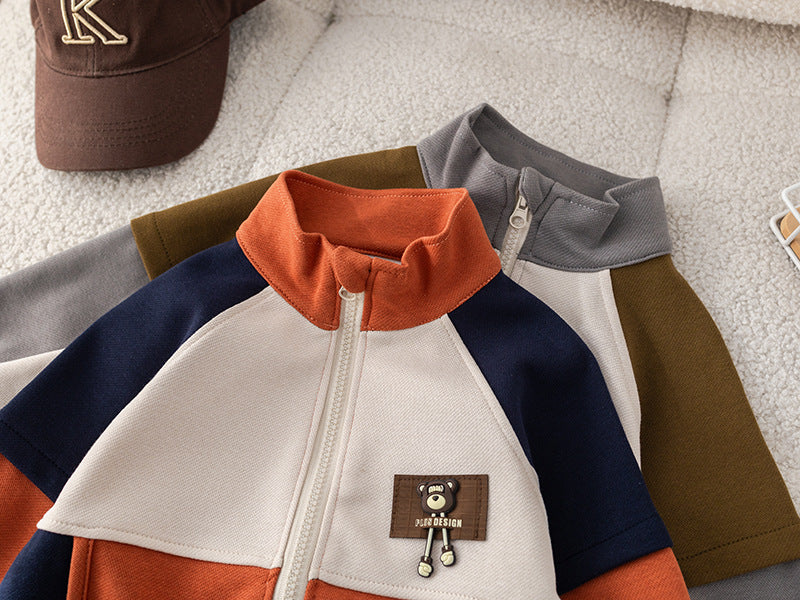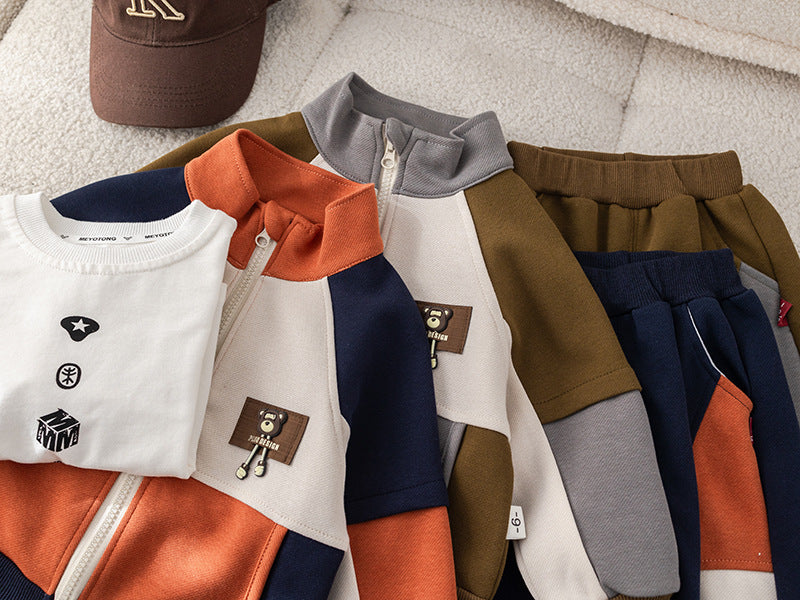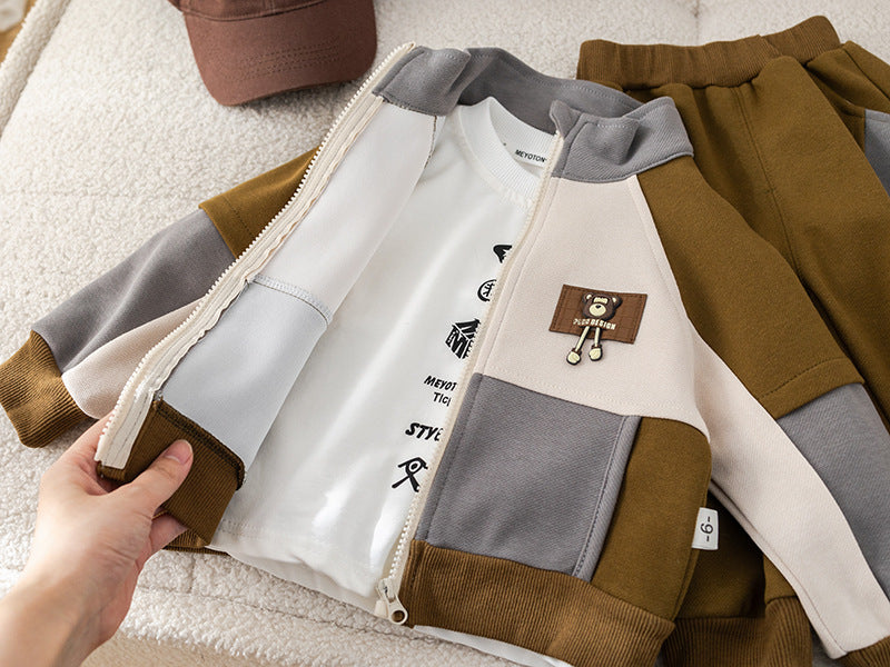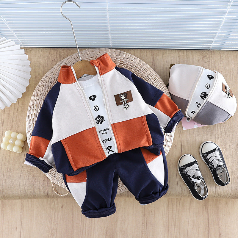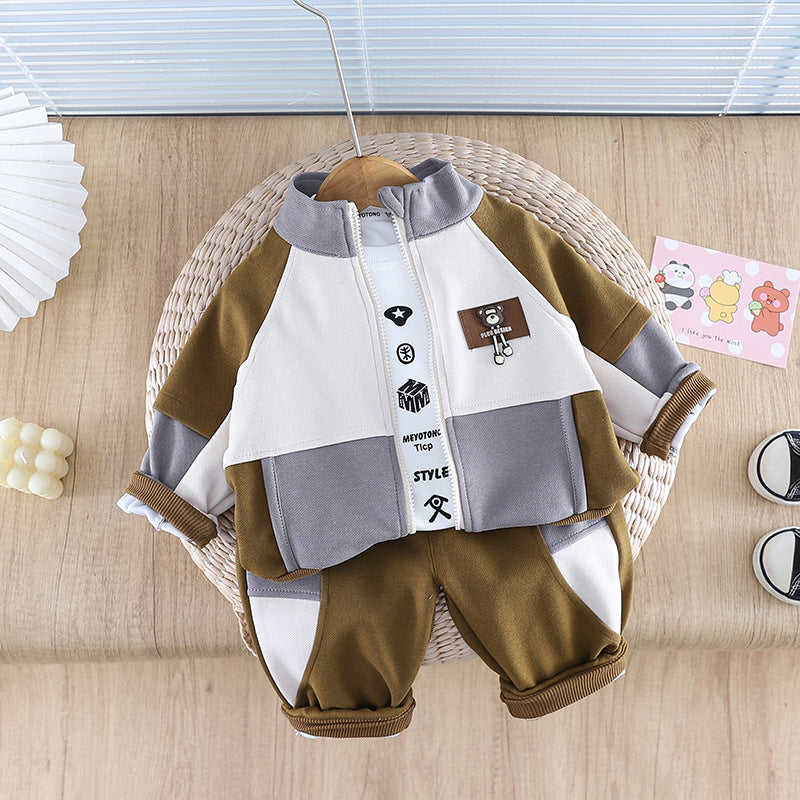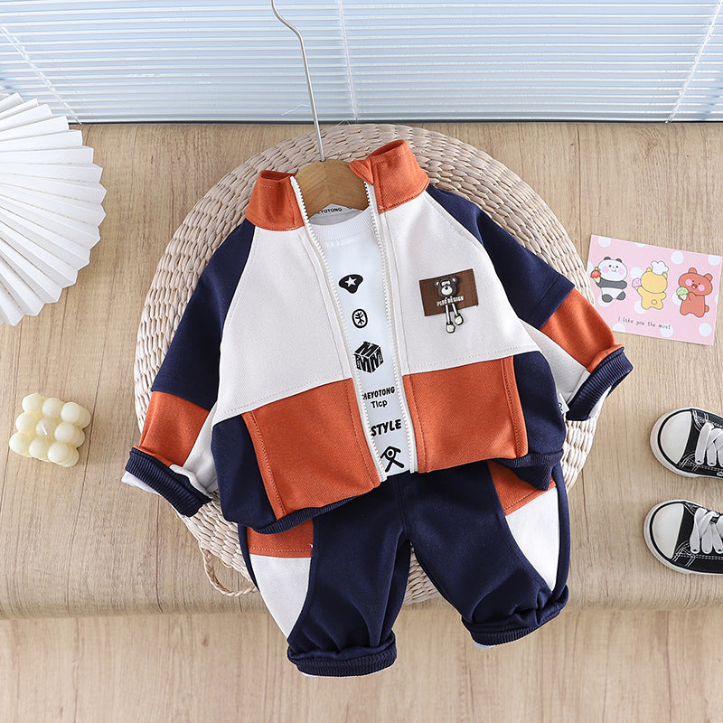 SSX220824-121 بدلة 3 قطع قطن خريفي ربيعي دافي ( بلوزة + جكيت + بنطلون)