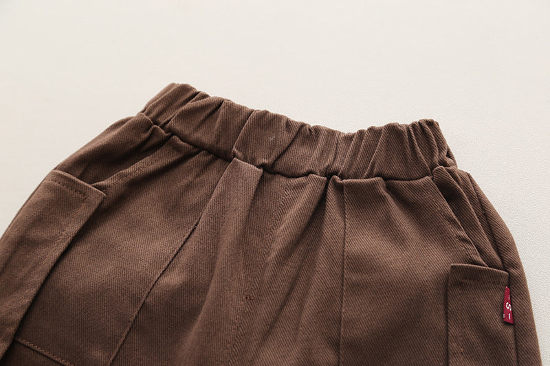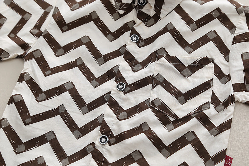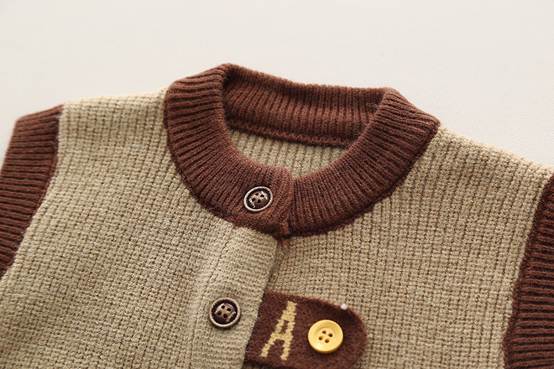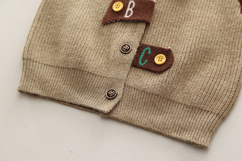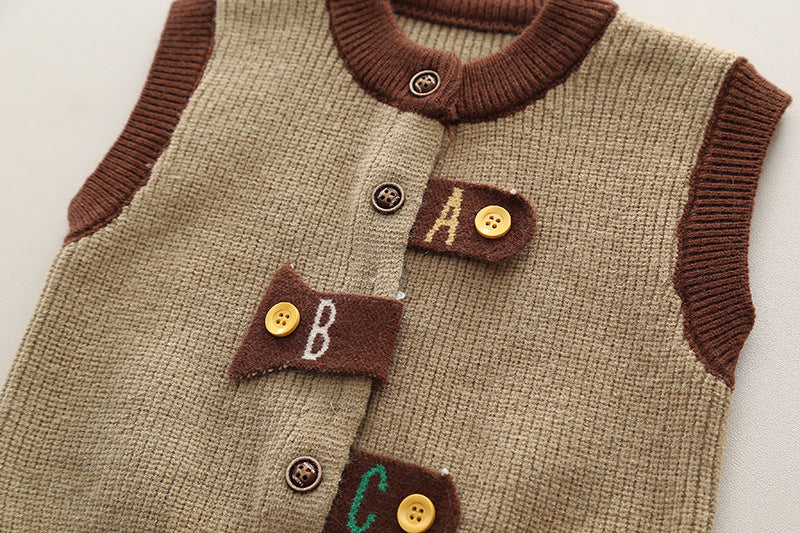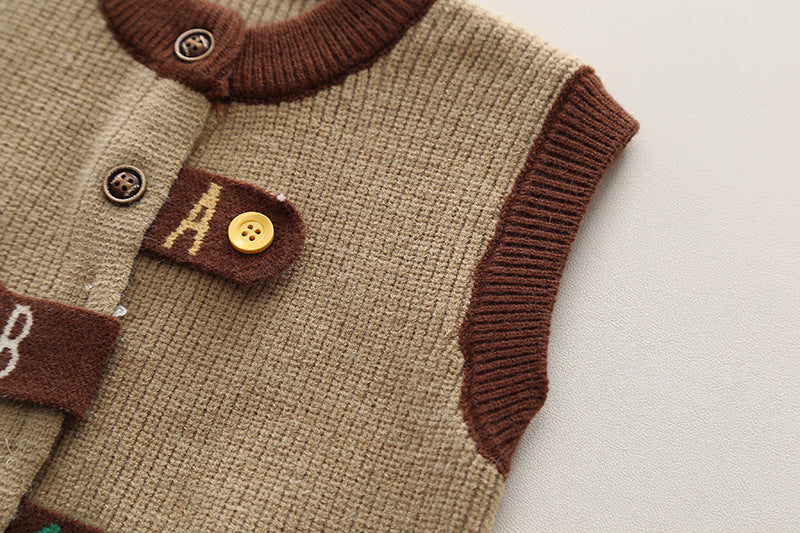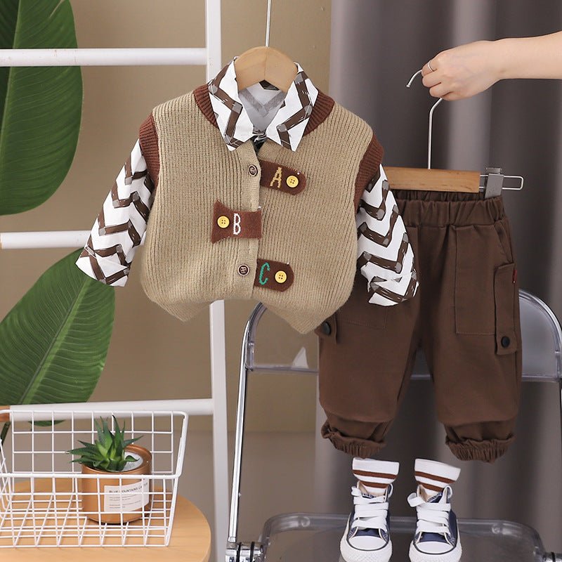 SSX220824-138 طقم ولادي خريفي ربيعي 3 قطع ( قميص + فست صوف + بنطلون كتان)