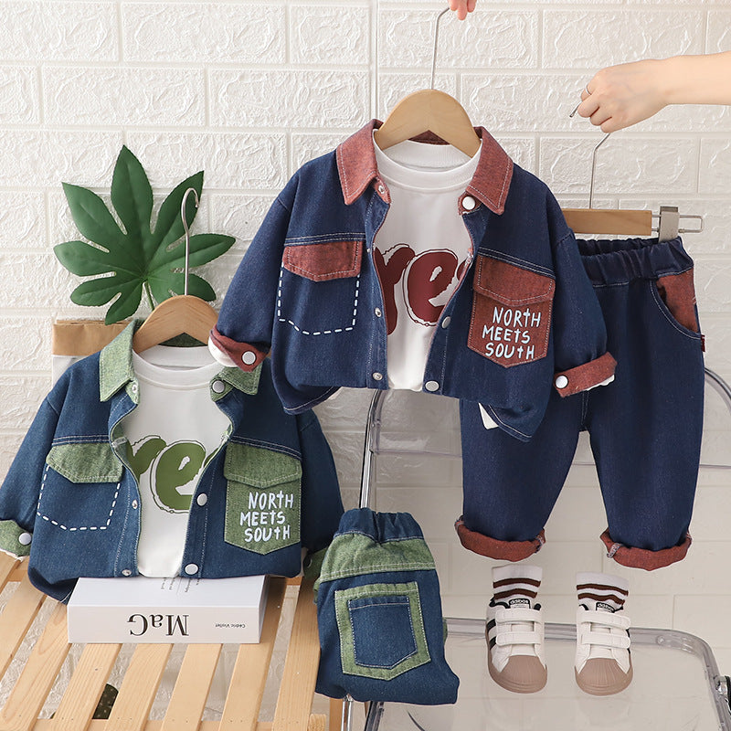 SSX220824-141 طقم جينز 3 قطع ( جكيت + بلوزة + بنطلون )