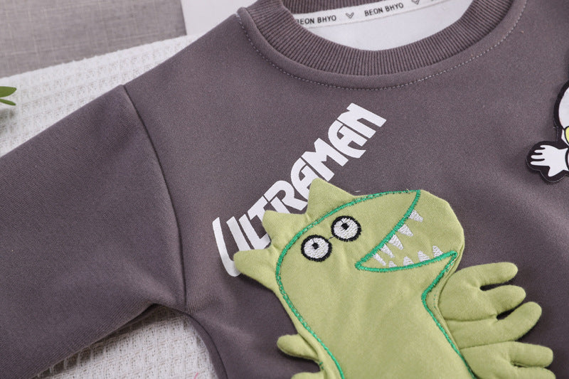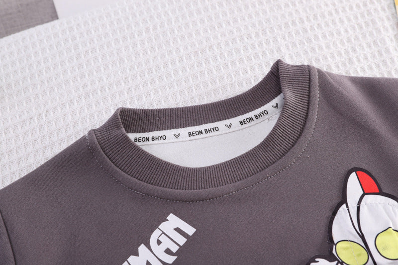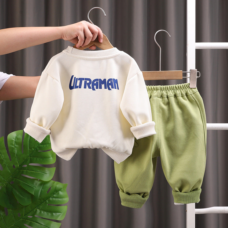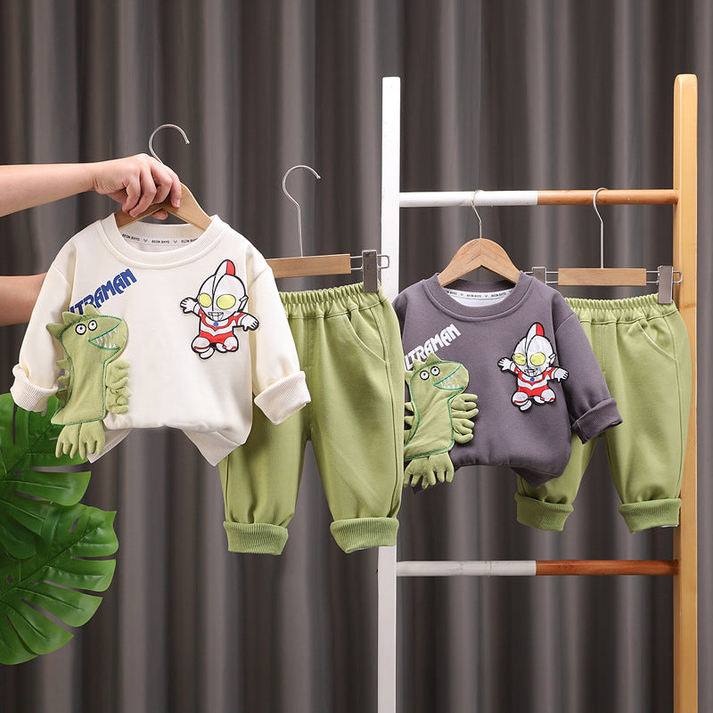 SSX220824-150 طقم ولادي قطن تقيل خريفي ربيعي ( بلوزة + بنطلون)