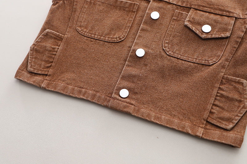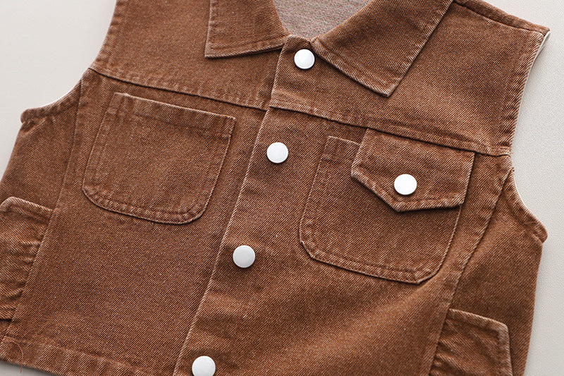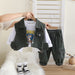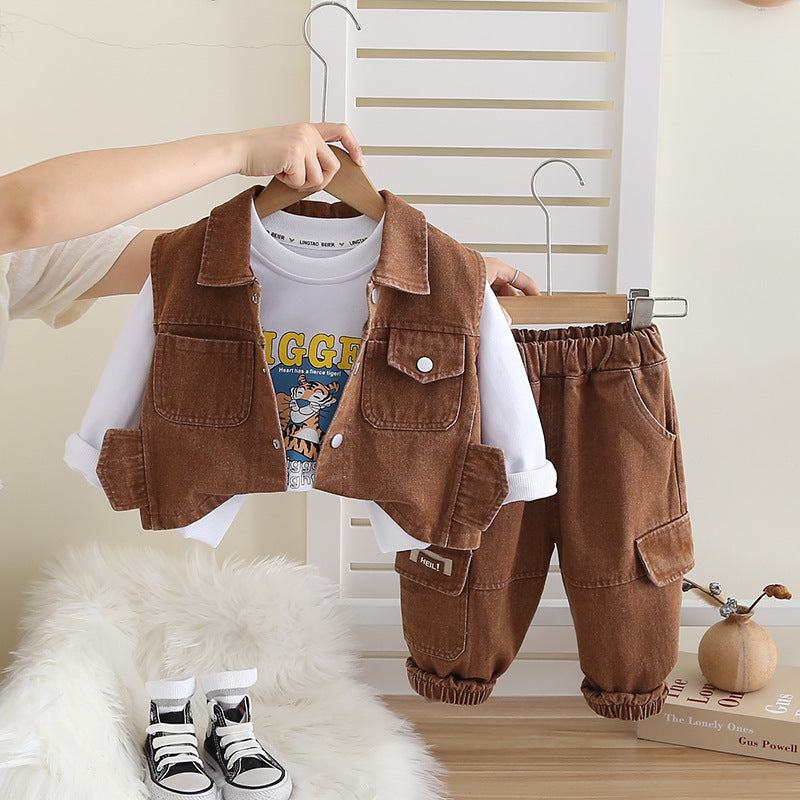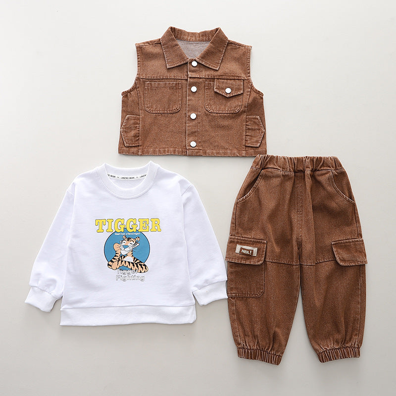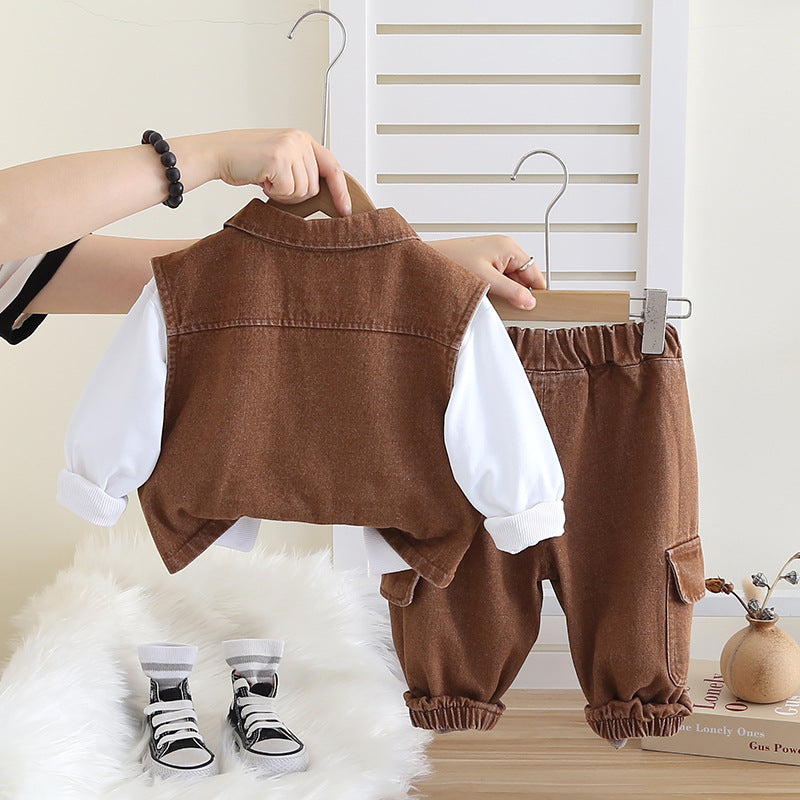 SSX220824-161 طقم ولادي 3 قطع ( بلوزة + فست جينز + بنطلون جينز)