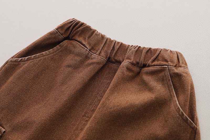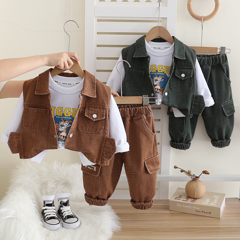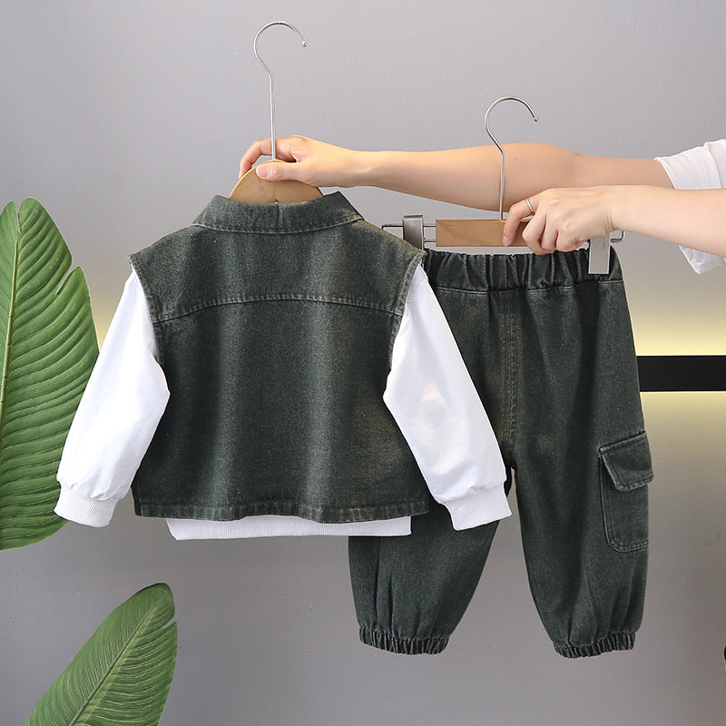 طقم ولادي 3 قطع ( بلوزة + فست جينز + بنطلون جينز)