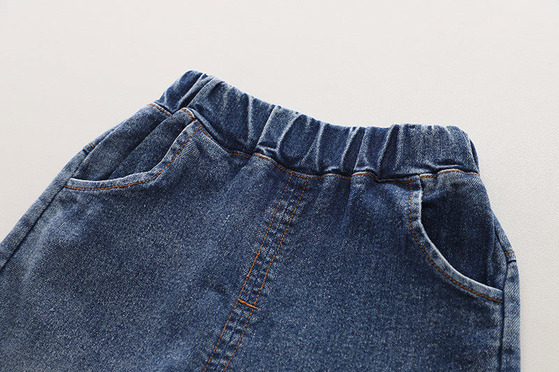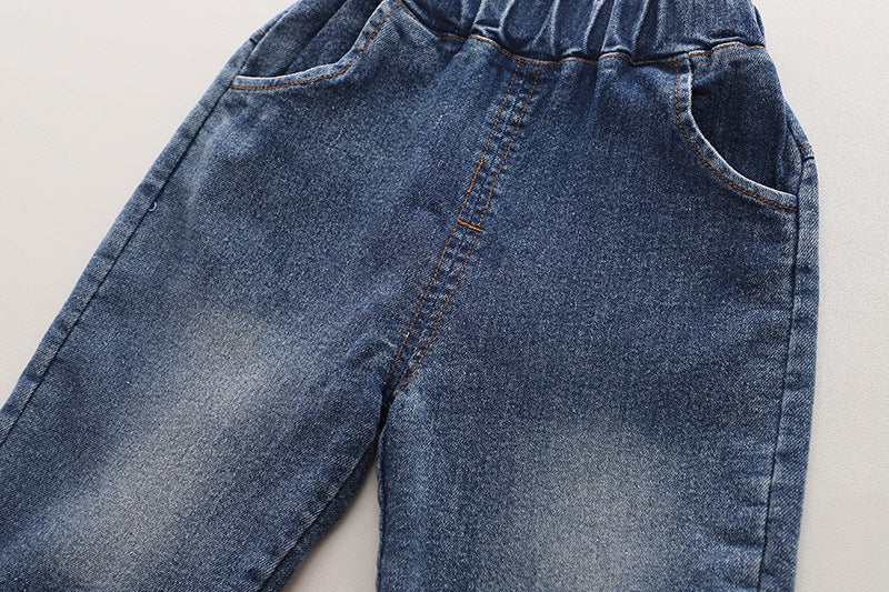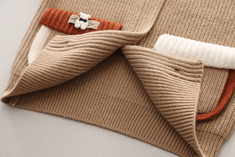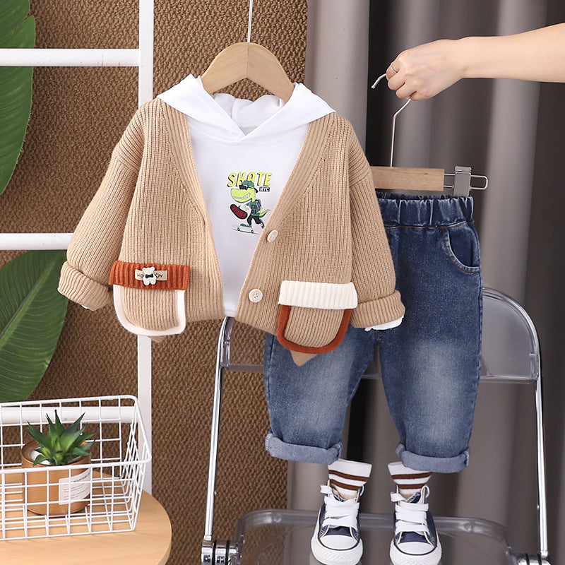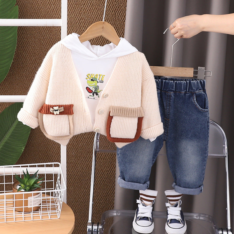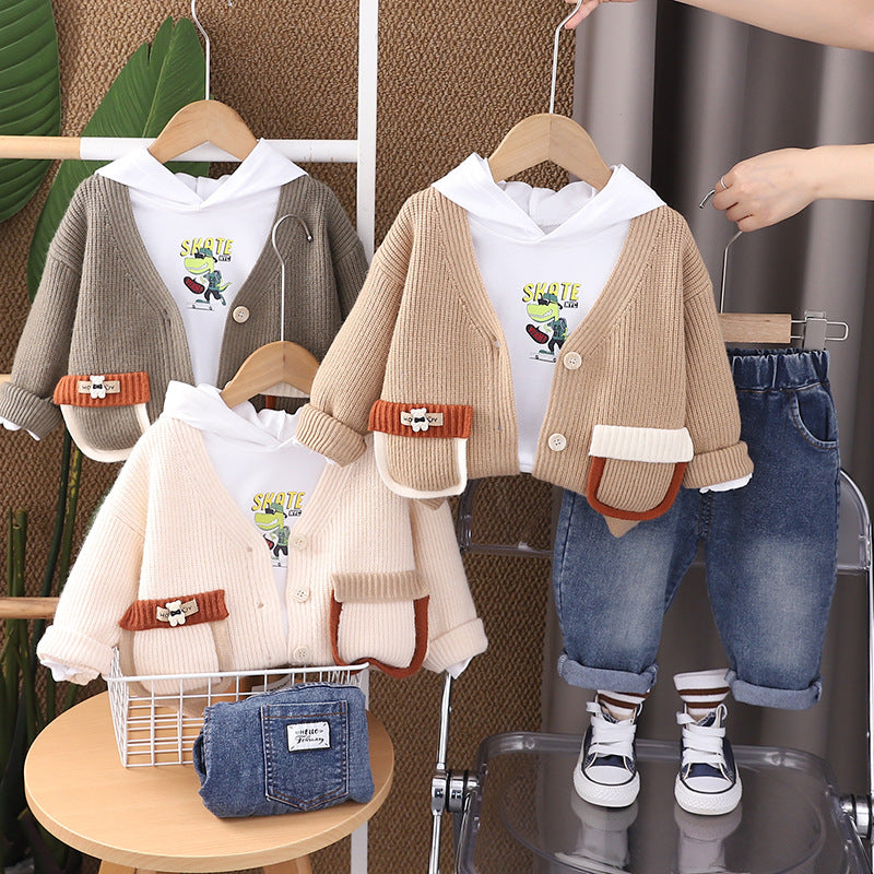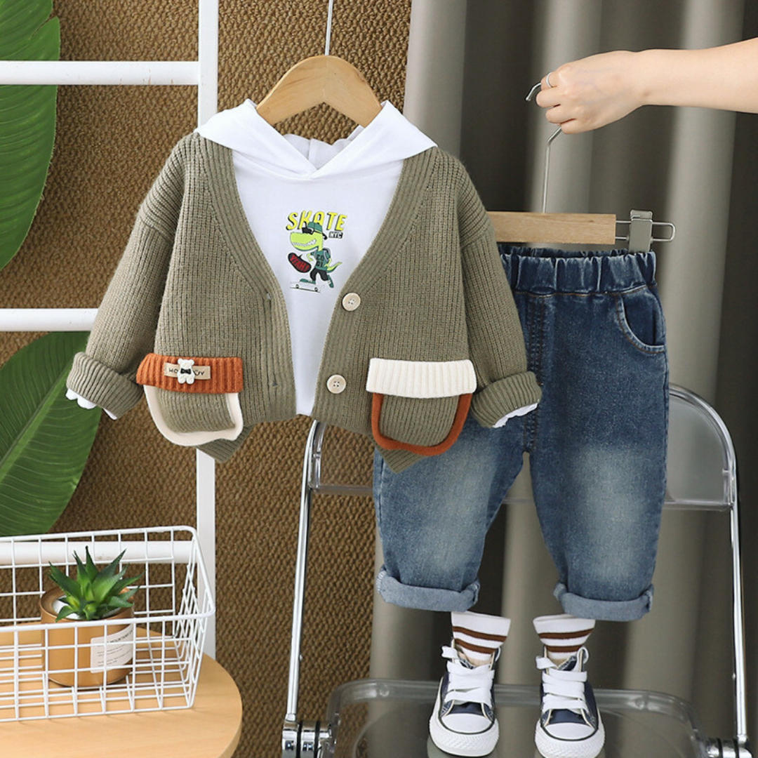 طقم ولادي 3 قطع ( جكيت صوف+ بلوزة قطنية + بنلطون جينز )