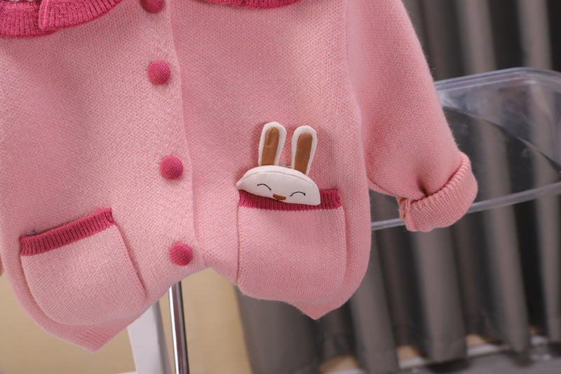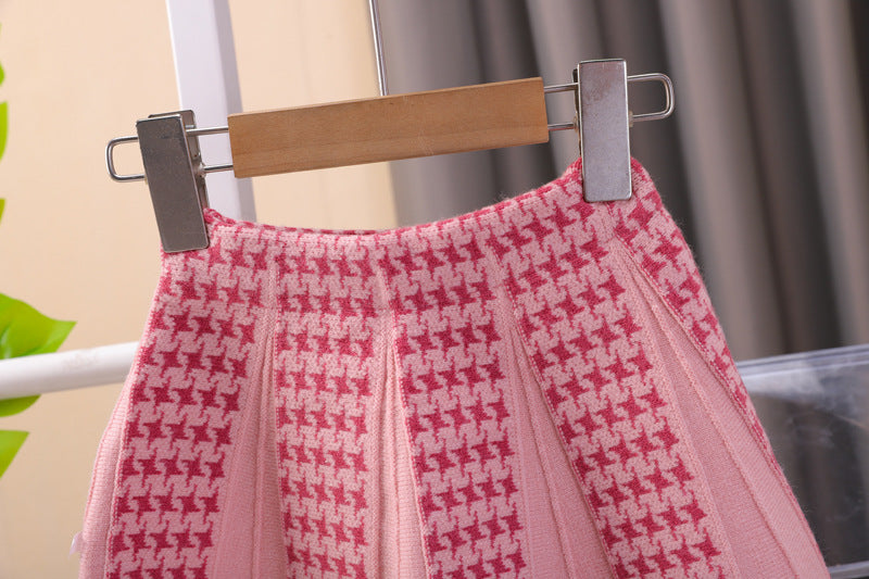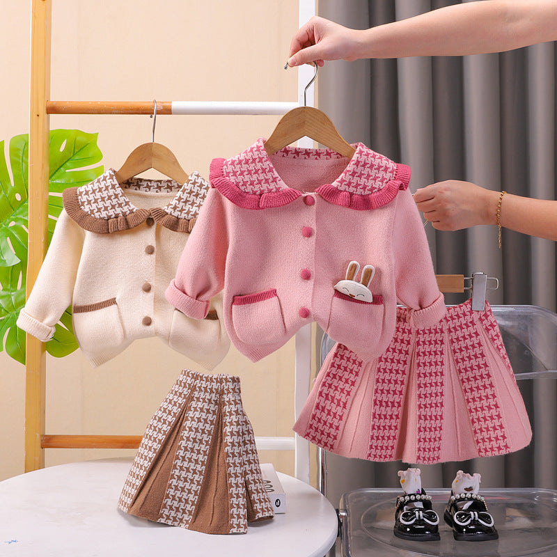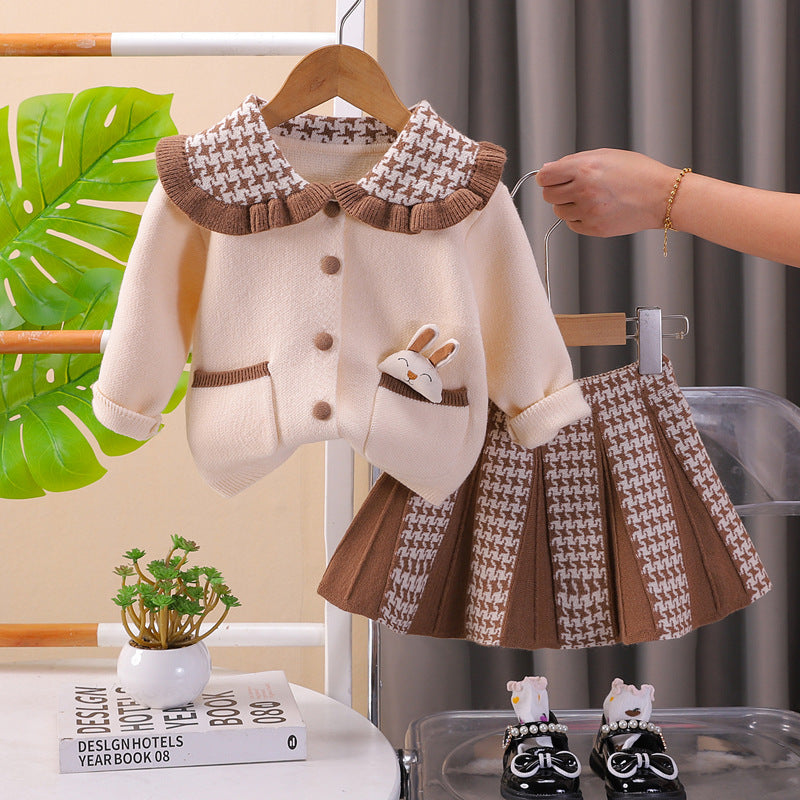 طقم بناتي صوف تقيل وناعم شتوي قطعتين ( جكيت + تنورة)