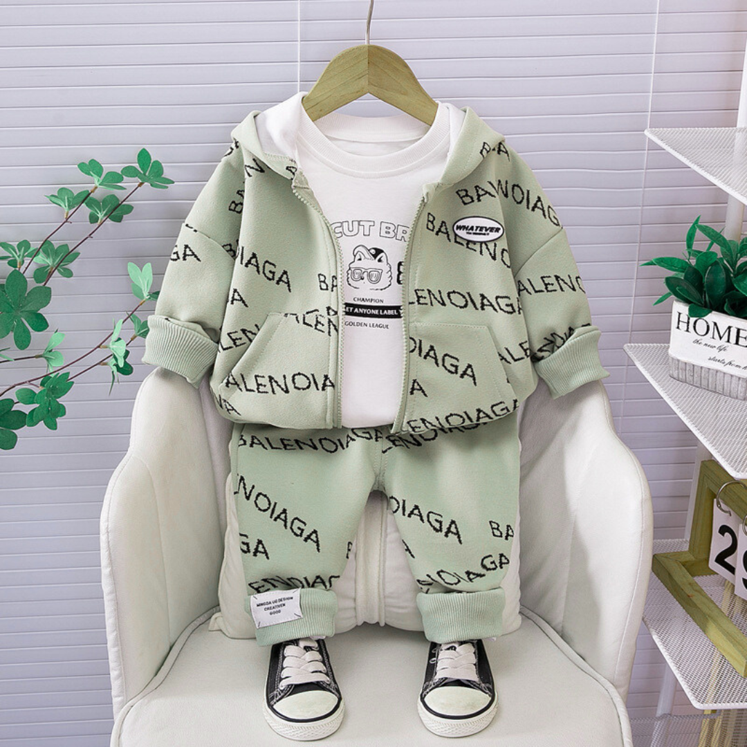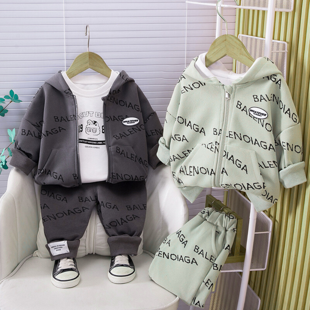 طقم ولادي قطن خريفي ربيعي 3 قطع ( جكيت + بلوزة + بنطلون)