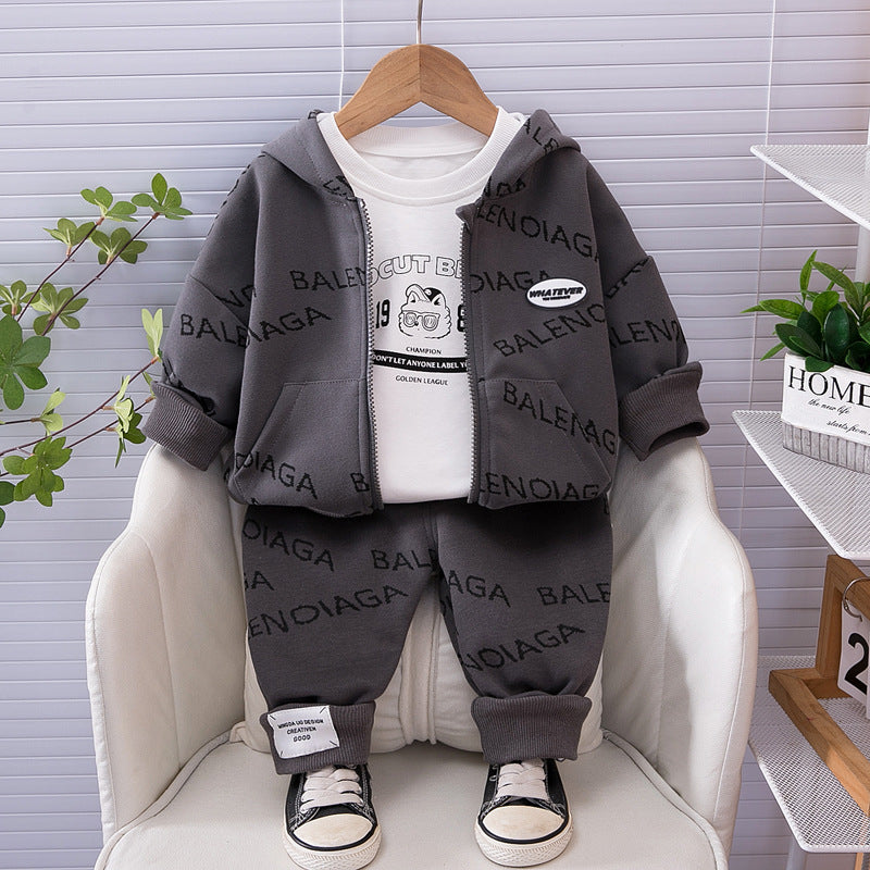 SSX220824-182 طقم ولادي قطن خريفي ربيعي 3 قطع ( جكيت + بلوزة + بنطلون)