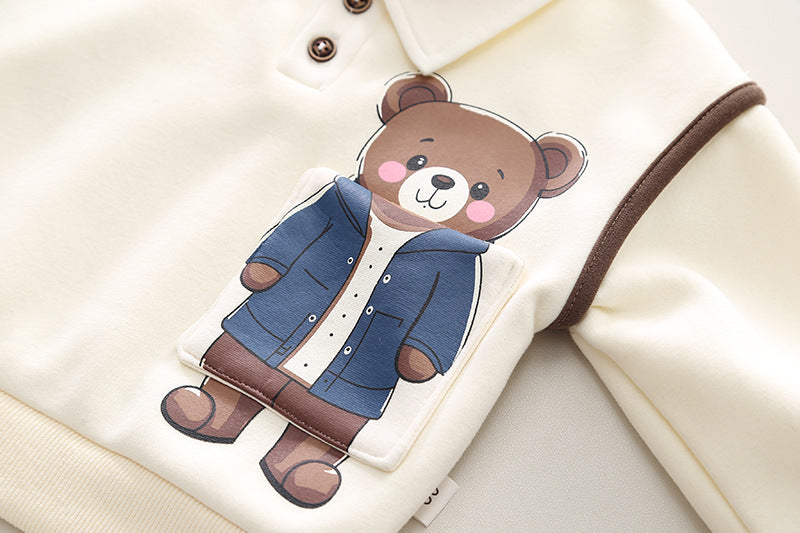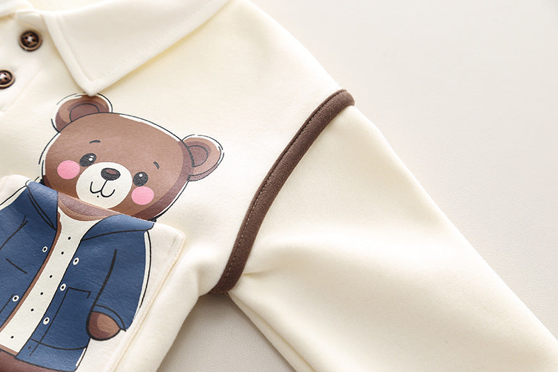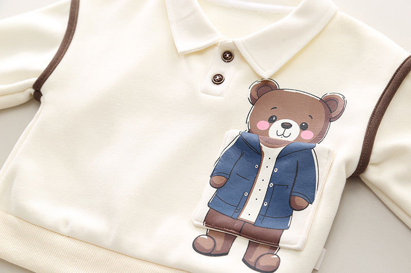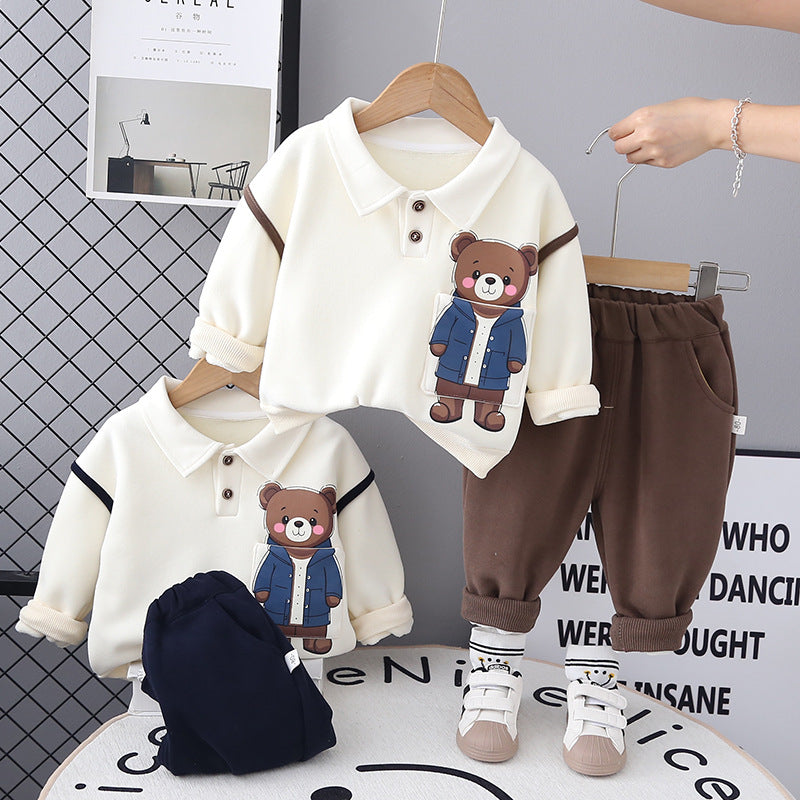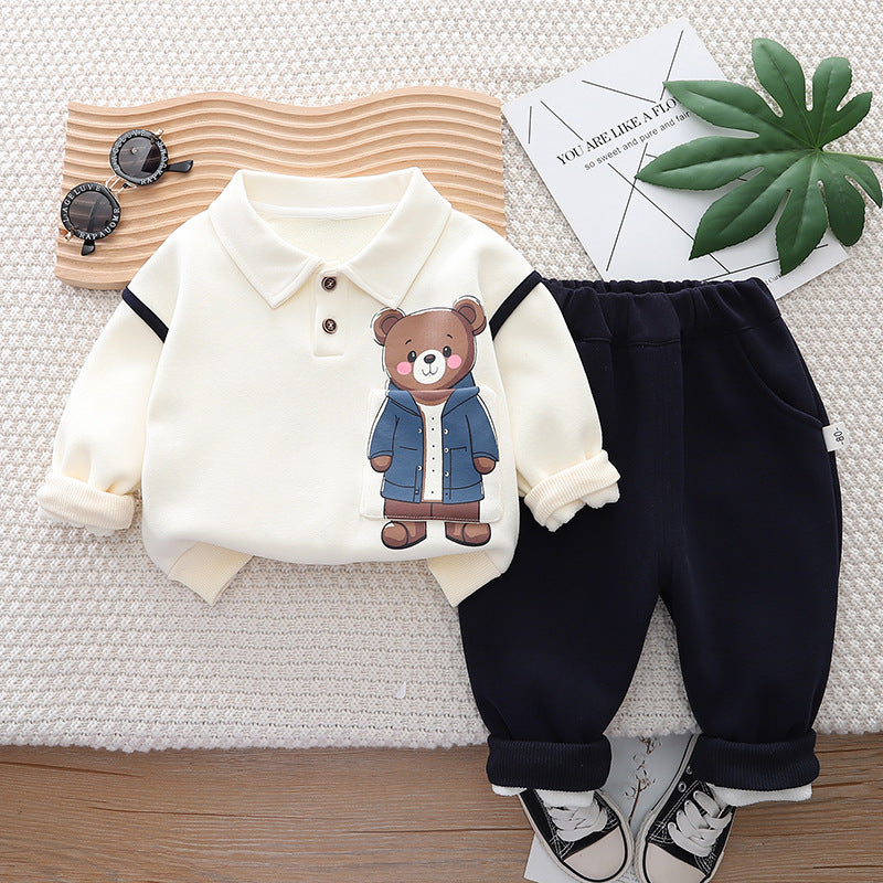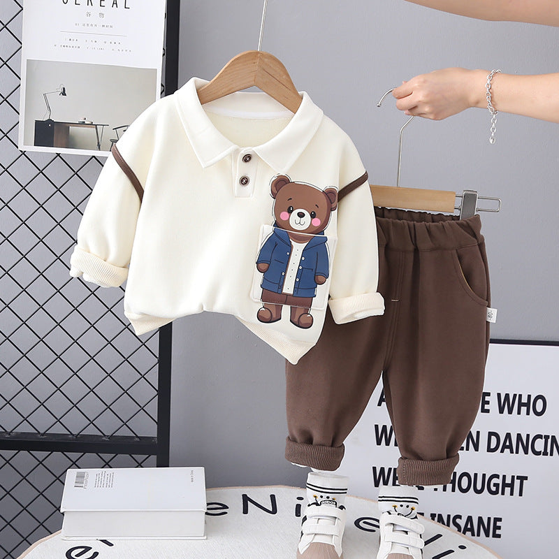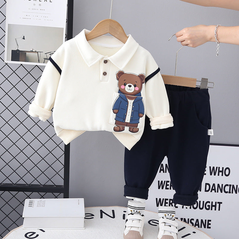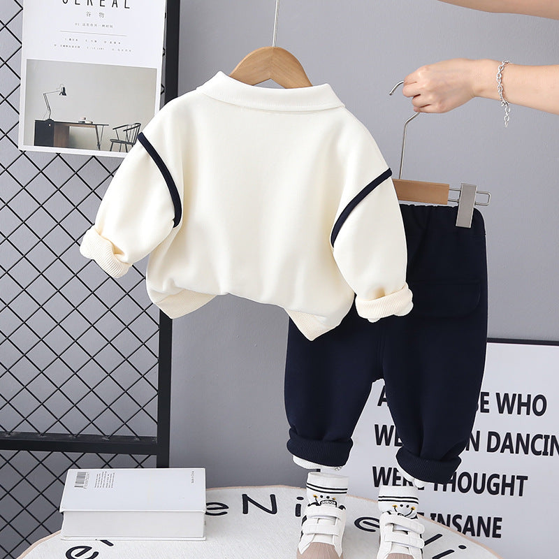 طقم ولادي شتوي قطن من جواه فرو تقيل قطعتين ( بلوزة + بنطلون)