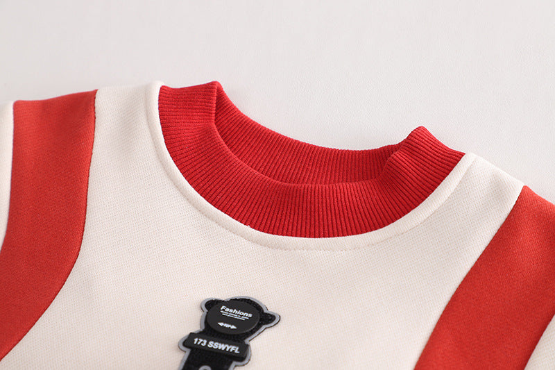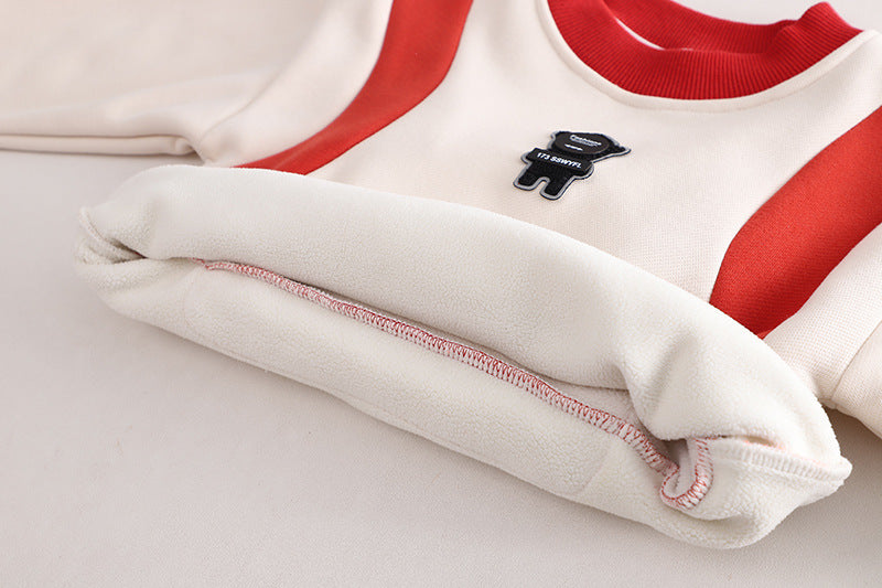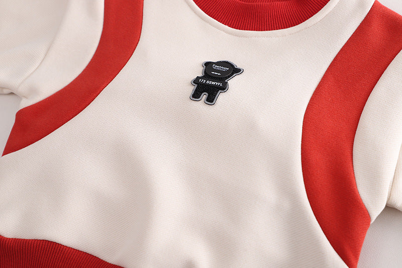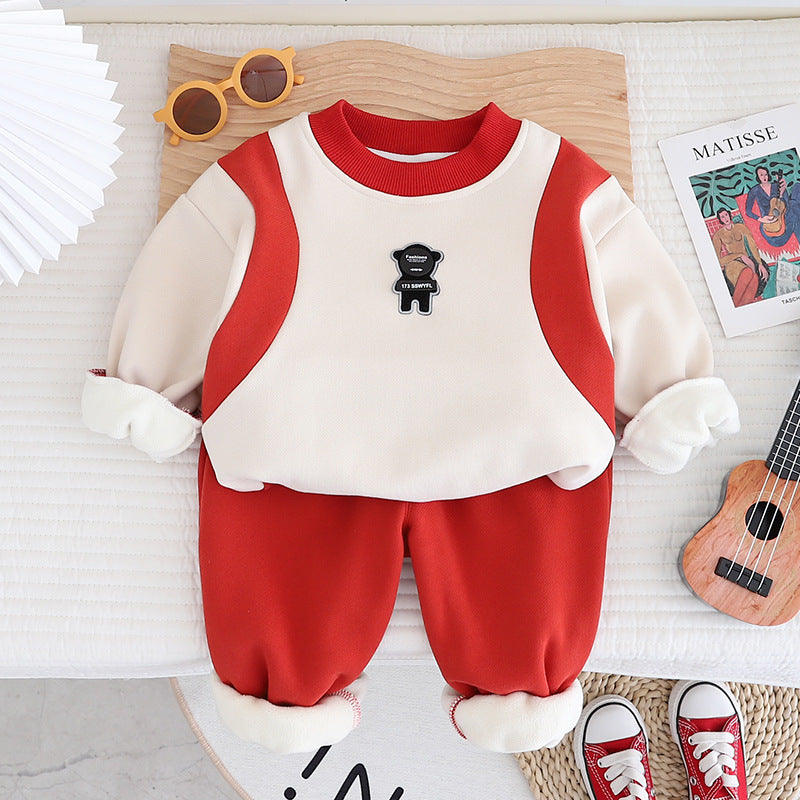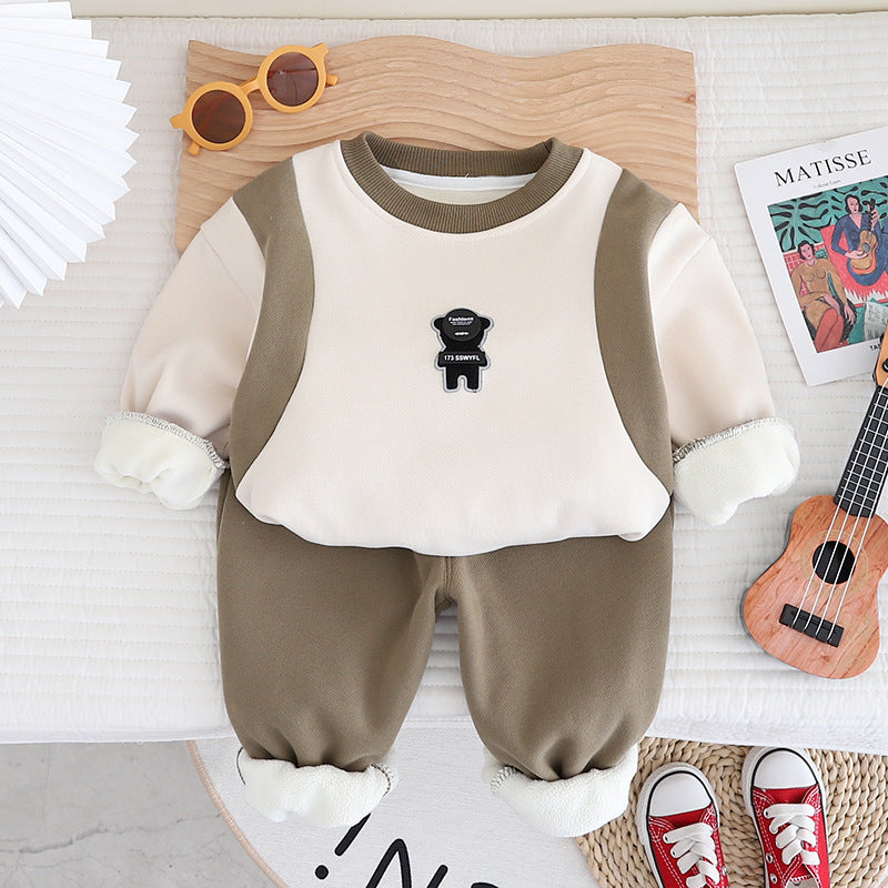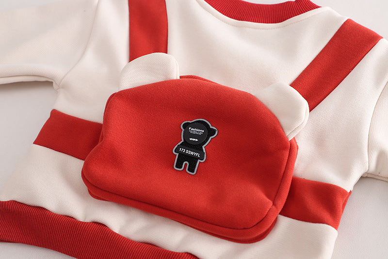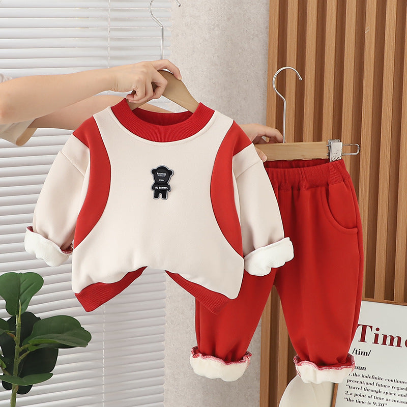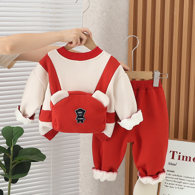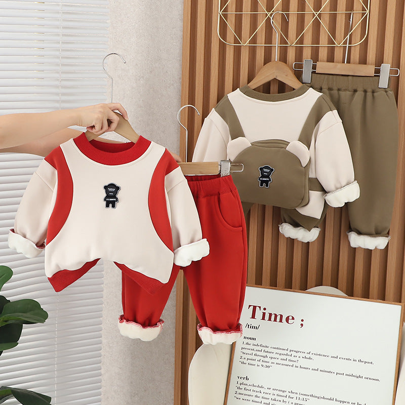 SSX220824-51 طقم ولادي شتوي تقيل مبطن فرو بالكامل قطعتين ( بلوزة + بنطلون) وعلى ظهر الطقم حقيبة