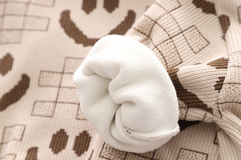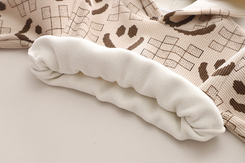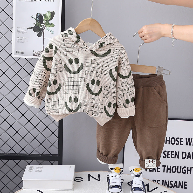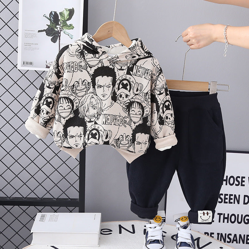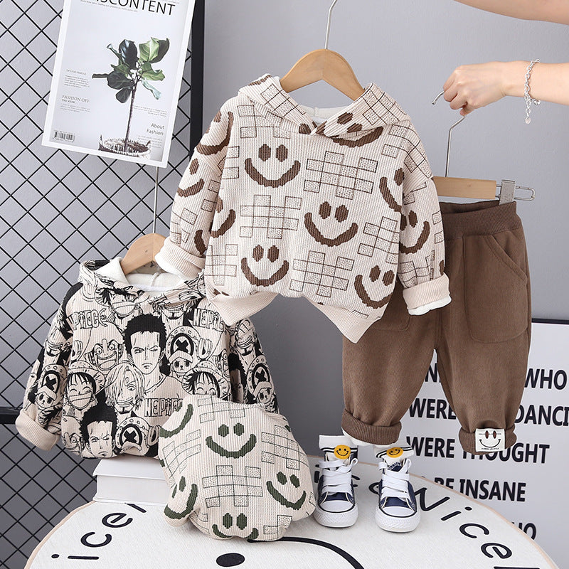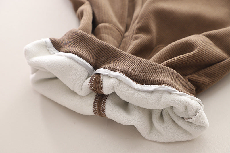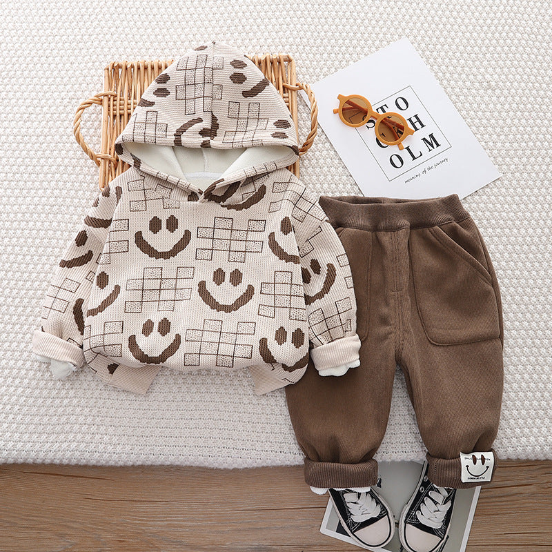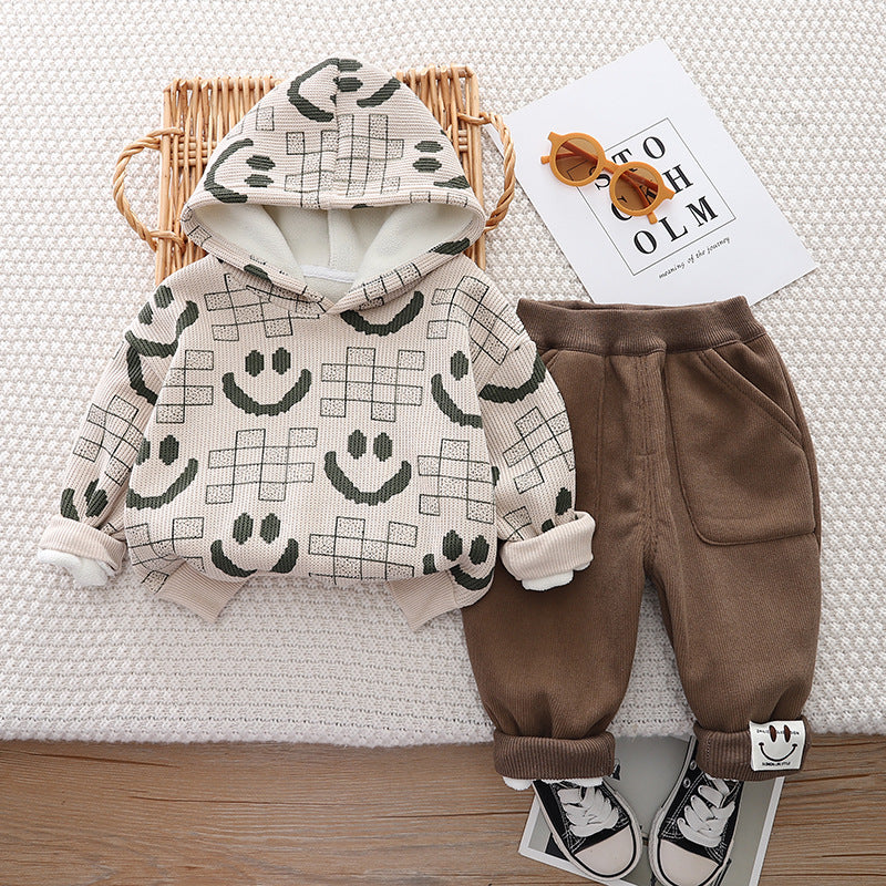 طقم ولادي شتوي تقيل مبطن فرو بالكامل قطعتين ( بلوزة + بنطلون)