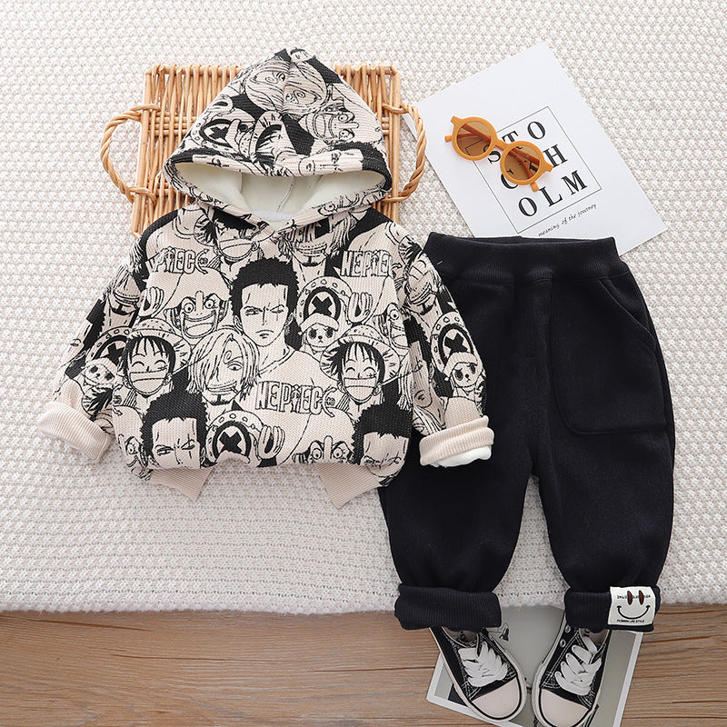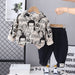 SSX220824-60 طقم ولادي شتوي تقيل مبطن فرو بالكامل قطعتين ( بلوزة + بنطلون)