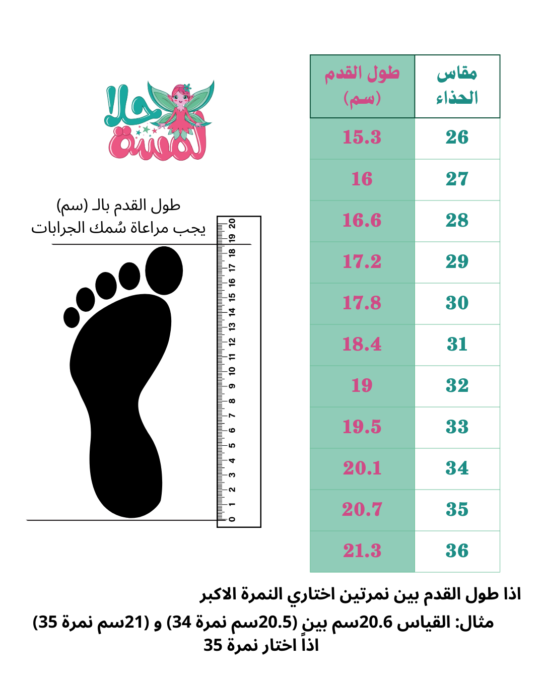 2. اختر الحذاء بناء على المقاسات الخاصة بجدول الأحذية لكل موديل.