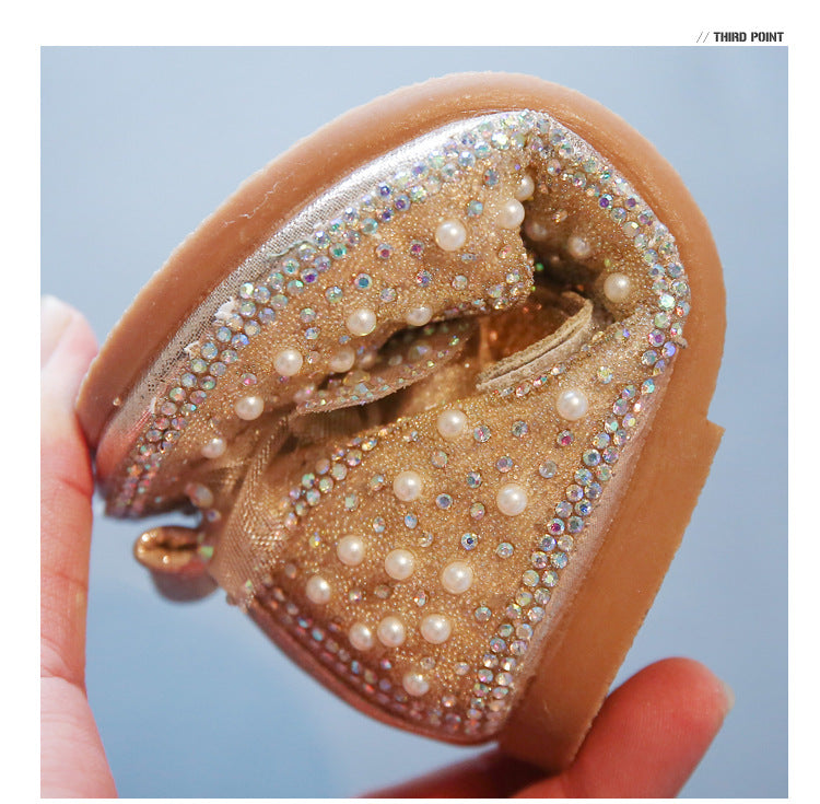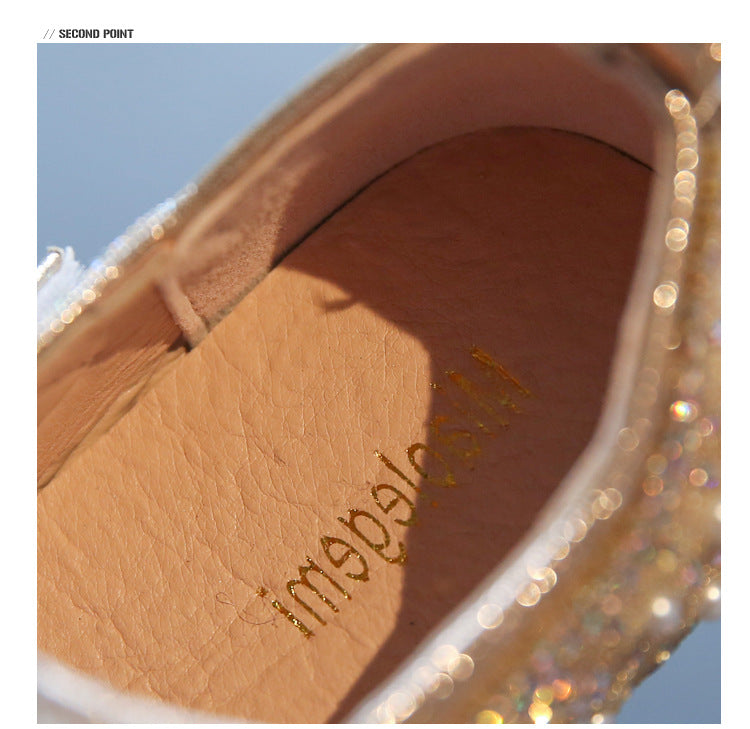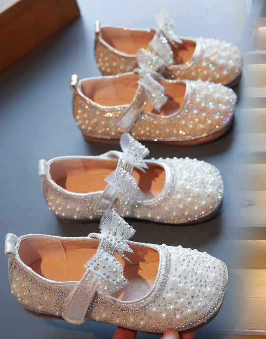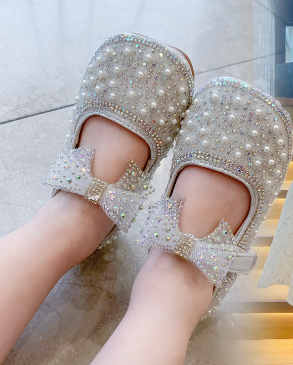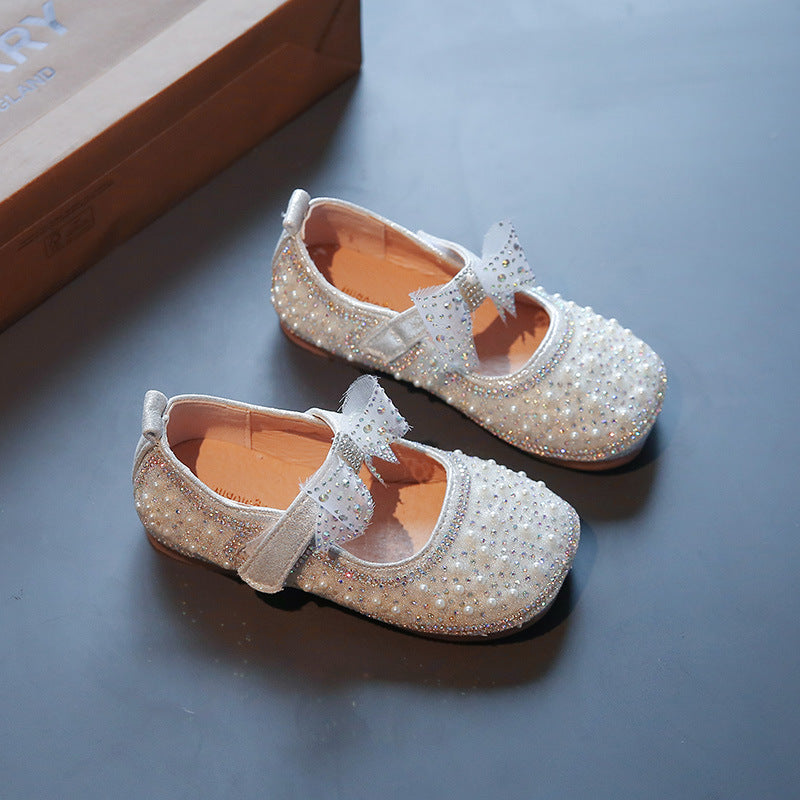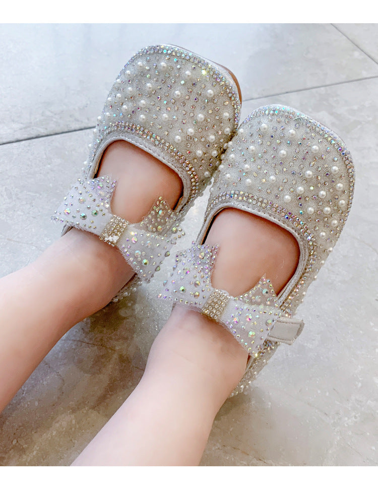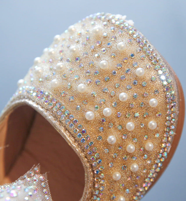 حذاء بناتي للمناسبات مزين الستراس والدانتيل