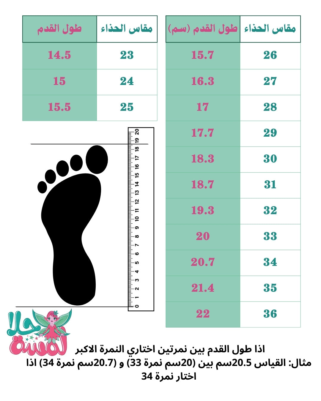 2. اختر الحذاء بناء على المقاسات الخاصة بجدول الأحذية لكل موديل.