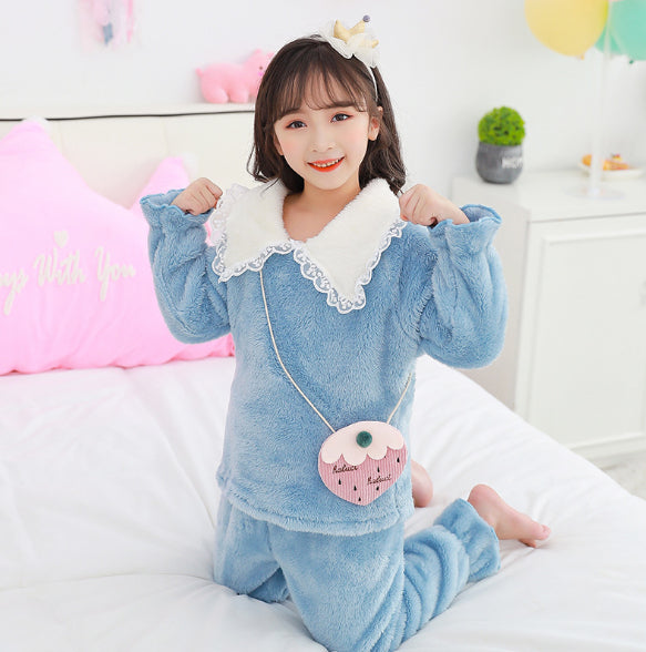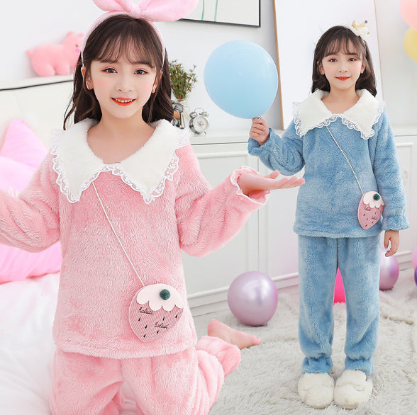 بجامة فرو تقيل وناعم 3 قطع ( بلوزة + بنطلون + اكسسوار شنتة )