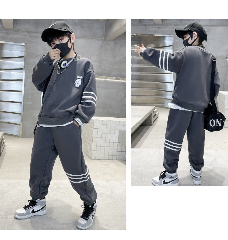 ترينج خريفي شتوي مبطن فرو تقيل قطعتين ( بلوزة + بنطلون)