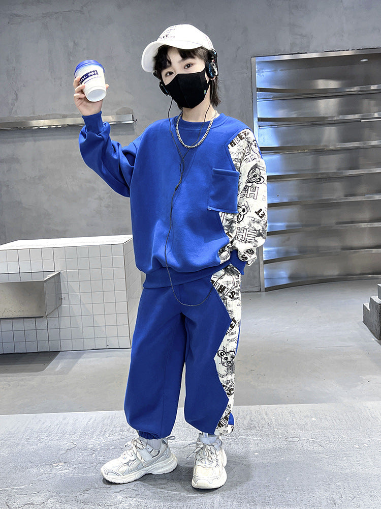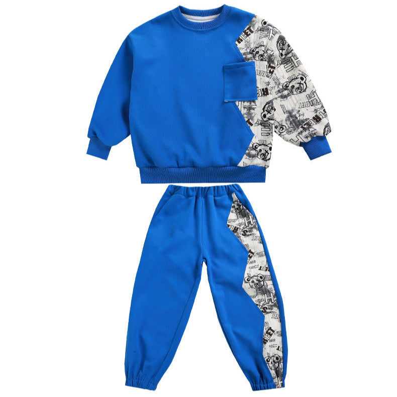 WZH301124-52 بدلة سبورت ولادي قطن قطعتين ( بلوزة + بنطلون)