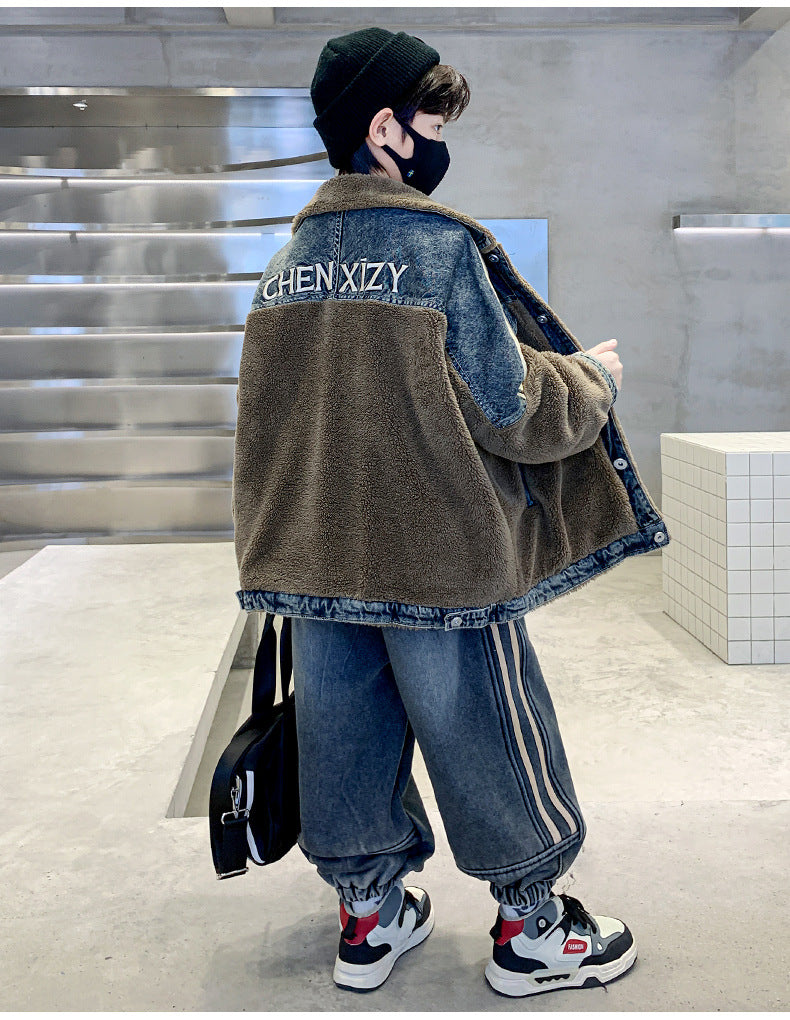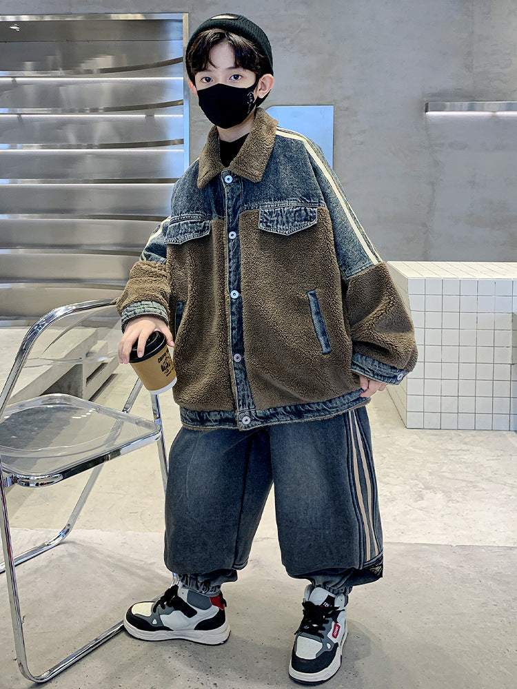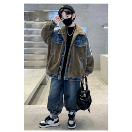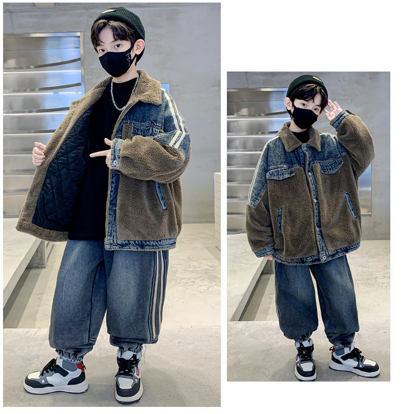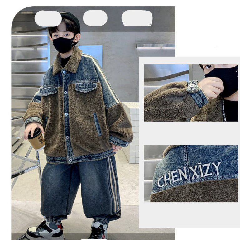 WZH301124-61 طقم شتوي ولادي قطعتين ( جكيت + بنطلون ) مبطن فرو تقيل بالكامل مناسب للثلج والاجواء شديدة البرد