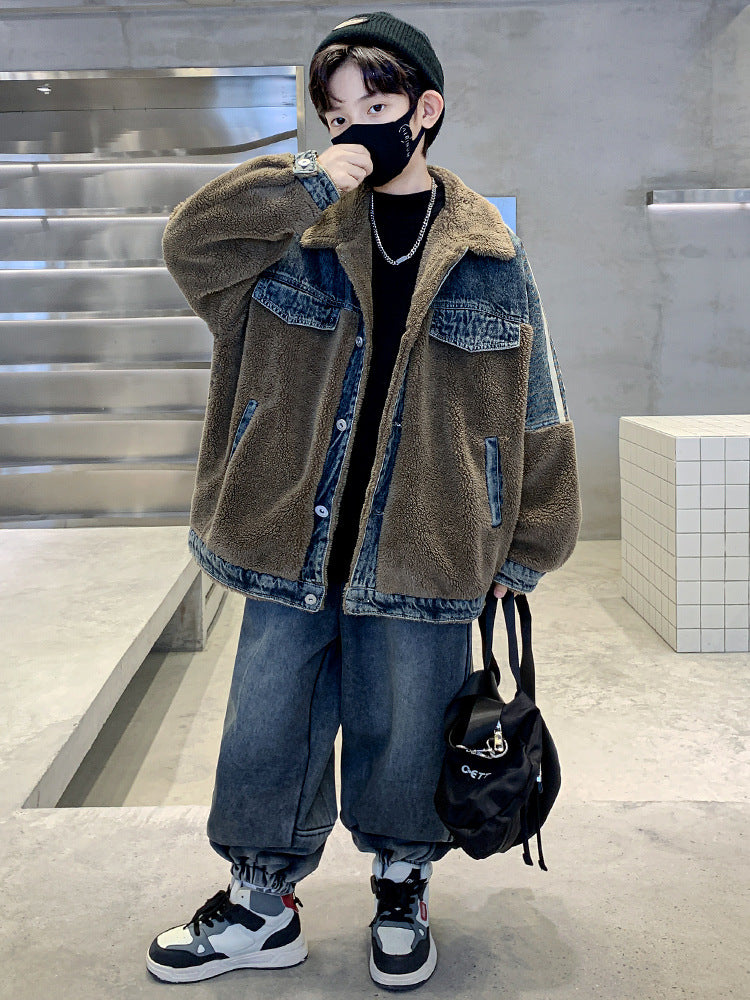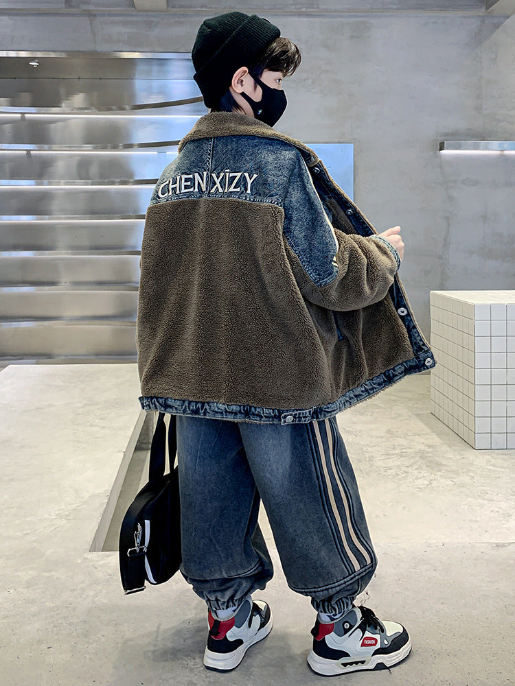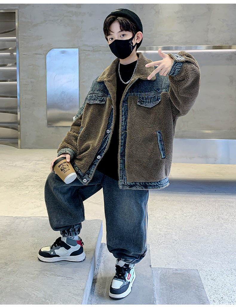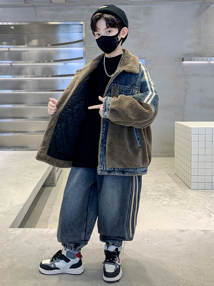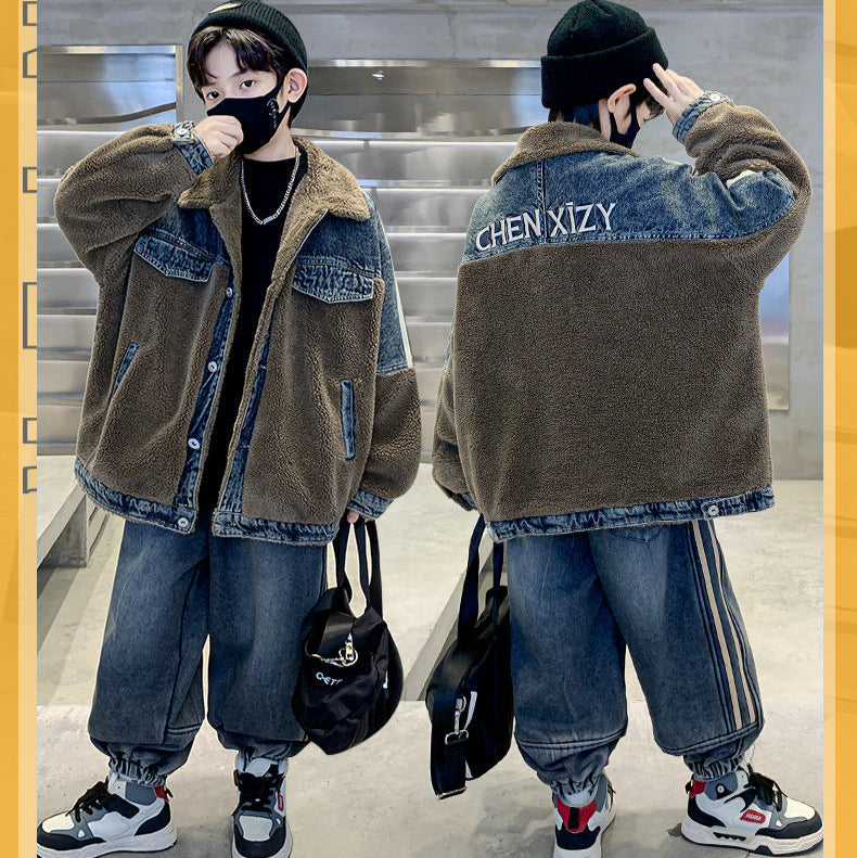 WZH301124-61 طقم شتوي ولادي قطعتين ( جكيت + بنطلون ) مبطن فرو تقيل بالكامل مناسب للثلج والاجواء شديدة البرد