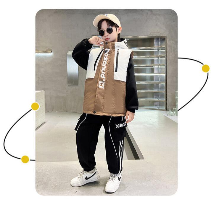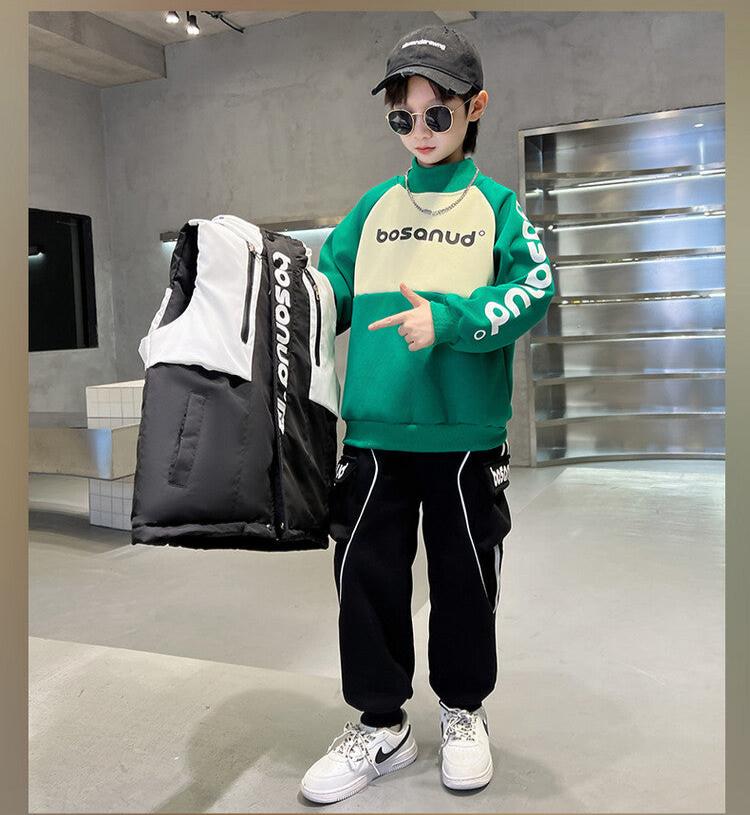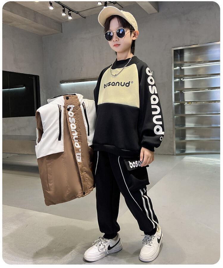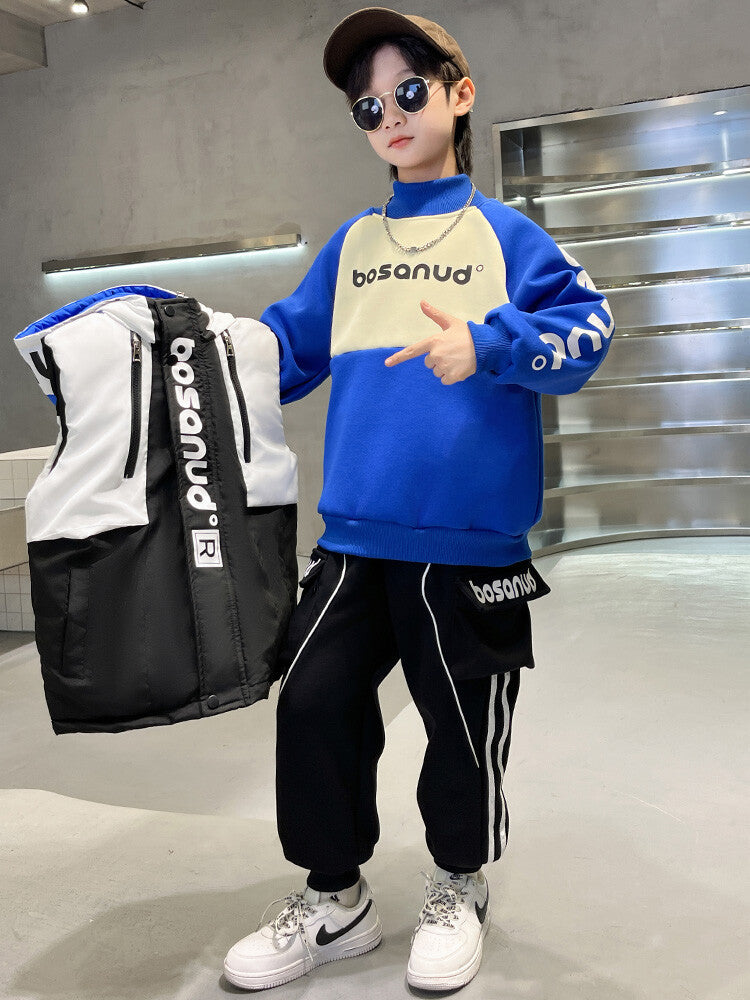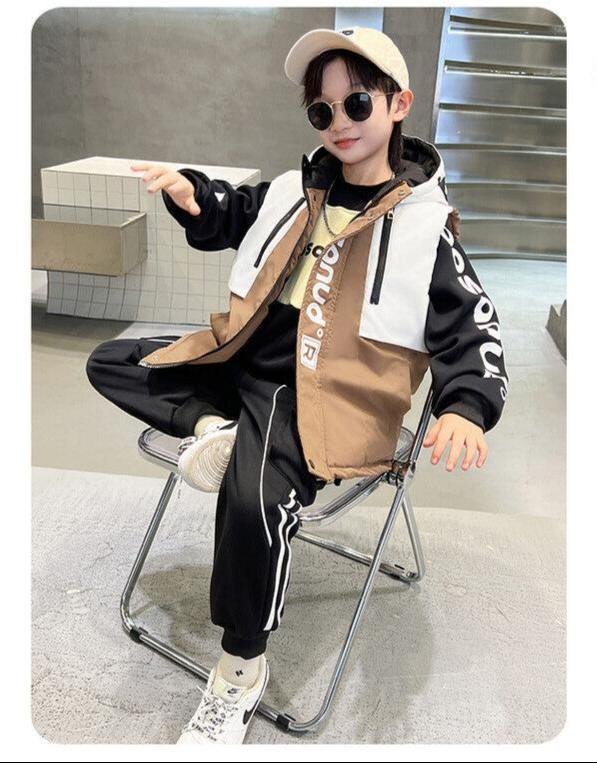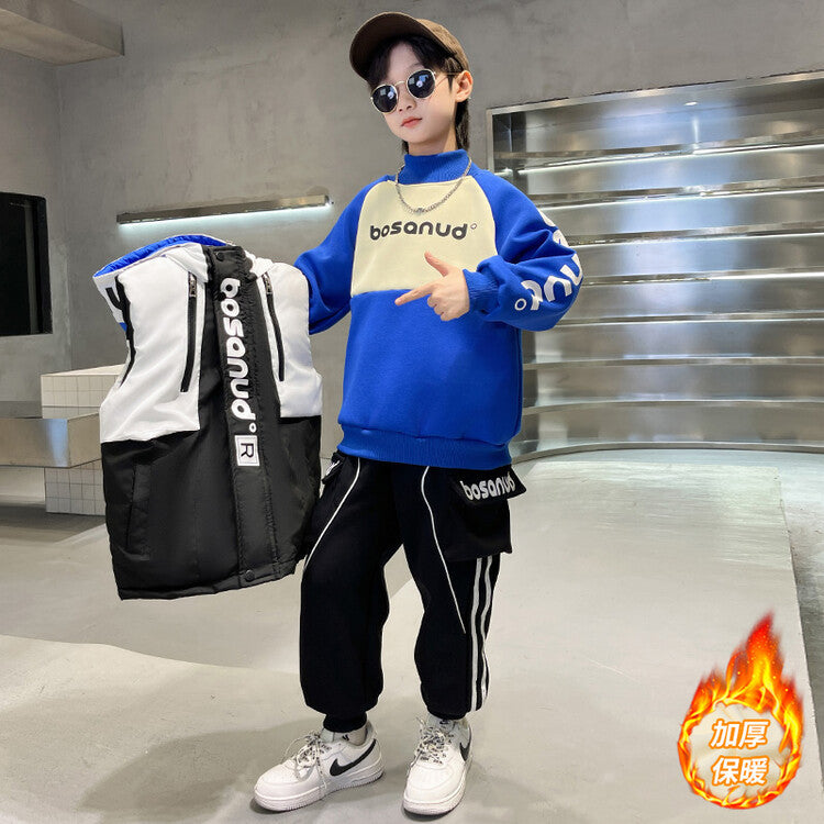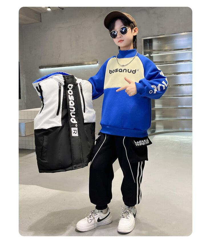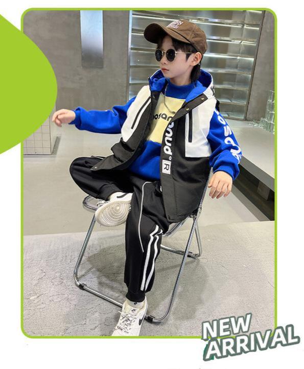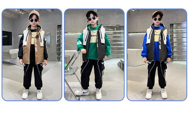 WZS040924-10 طقم ولادي شتوي 3 قطع تقيل مبطن بالكامل ( بلوزة + فست + بنطلون)