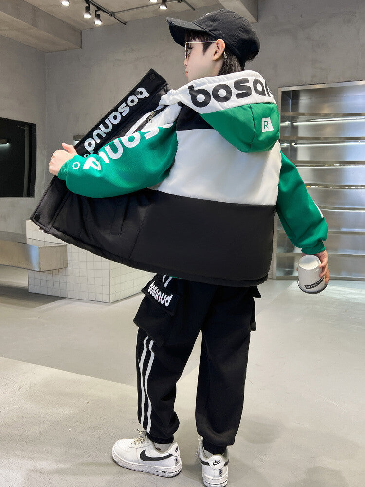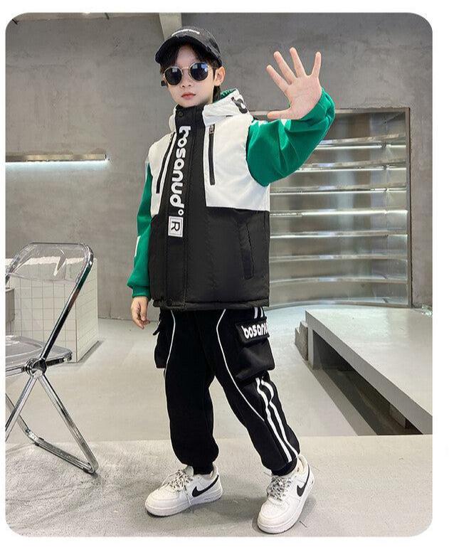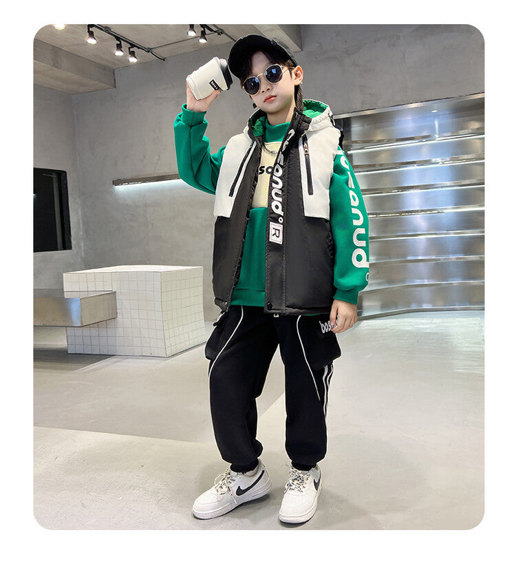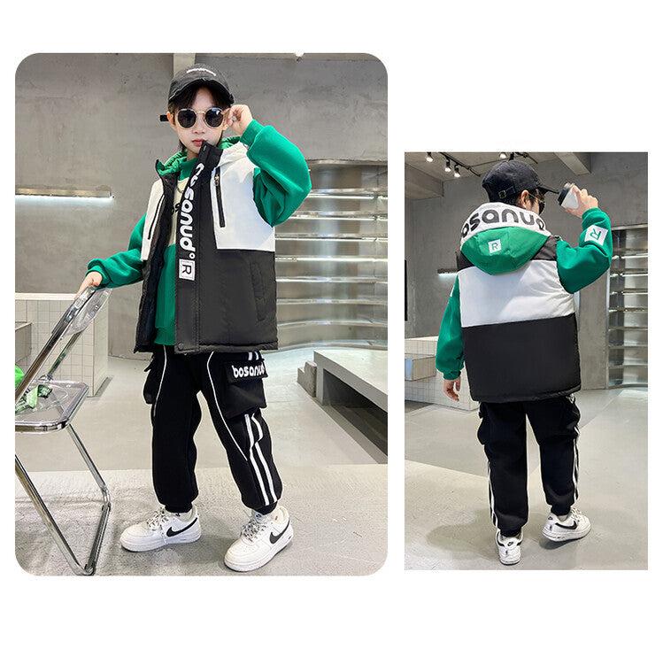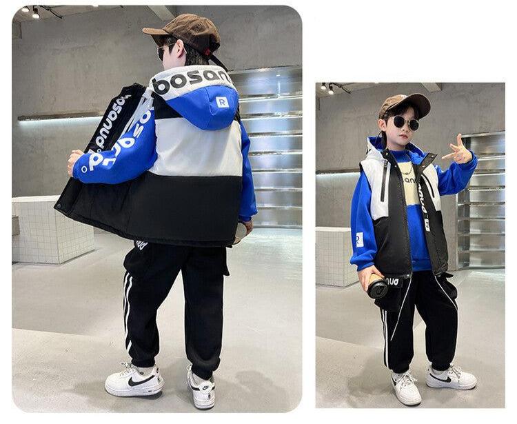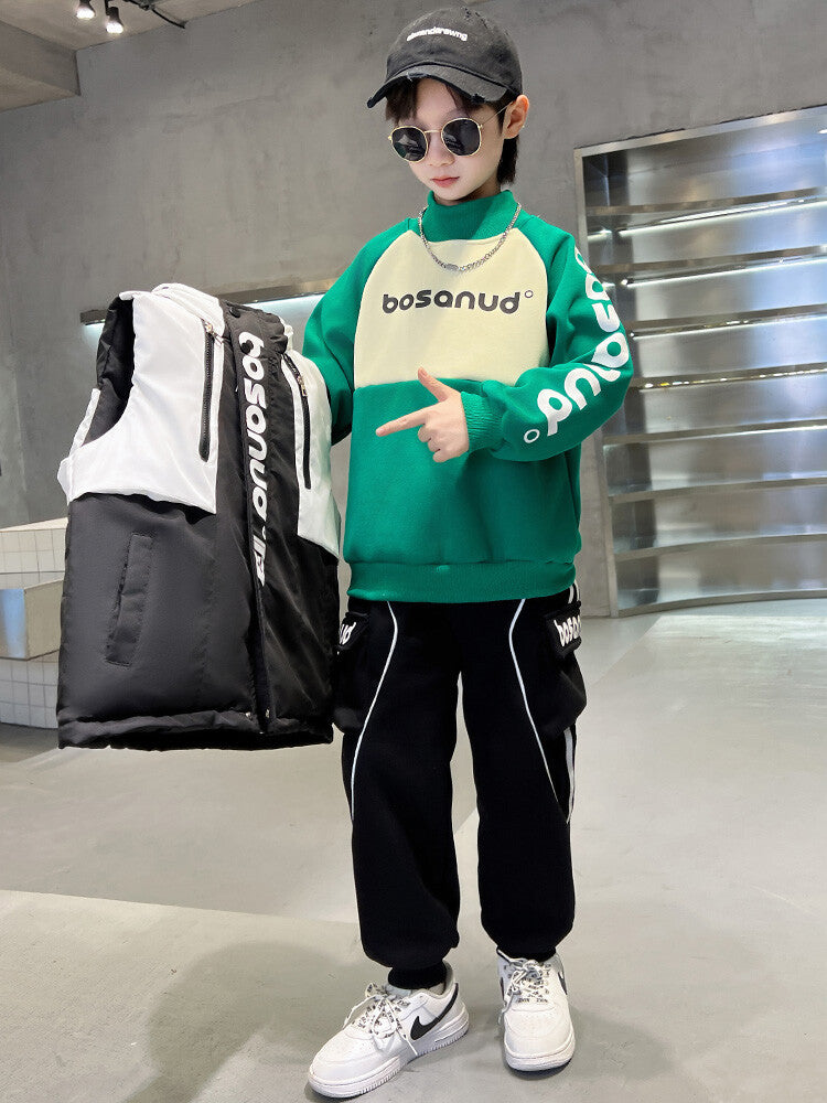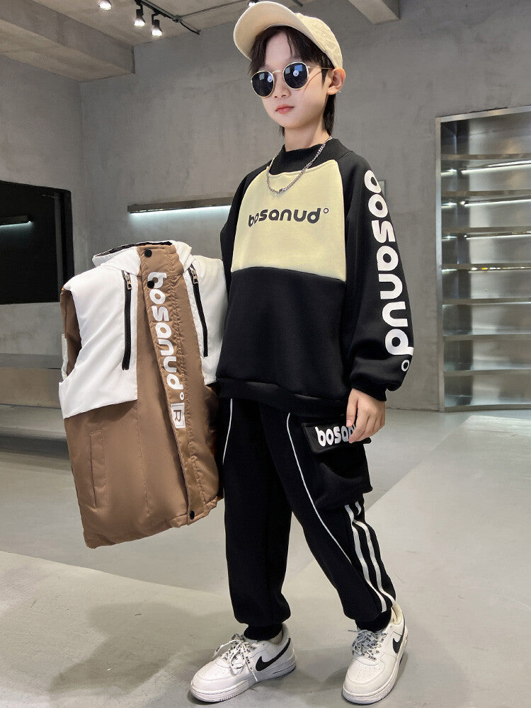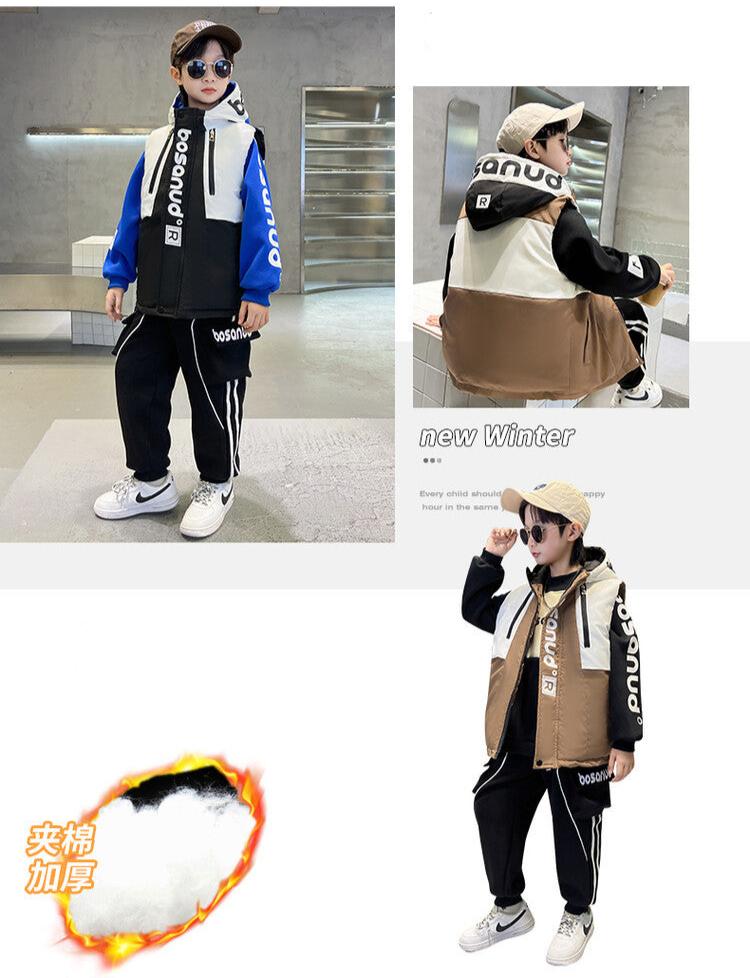 WZS040924-10 طقم ولادي شتوي 3 قطع تقيل مبطن بالكامل ( بلوزة + فست + بنطلون)