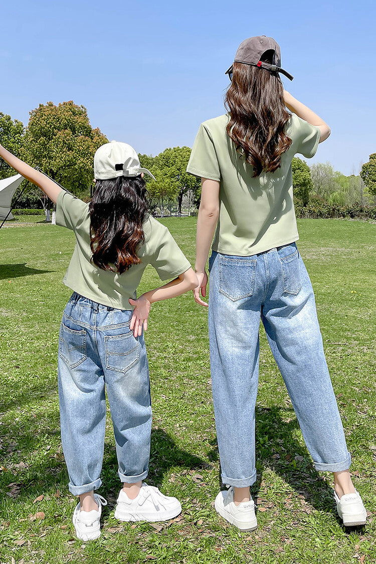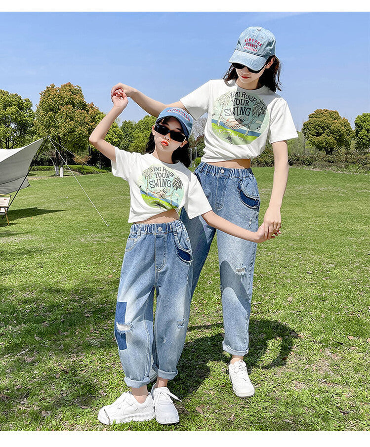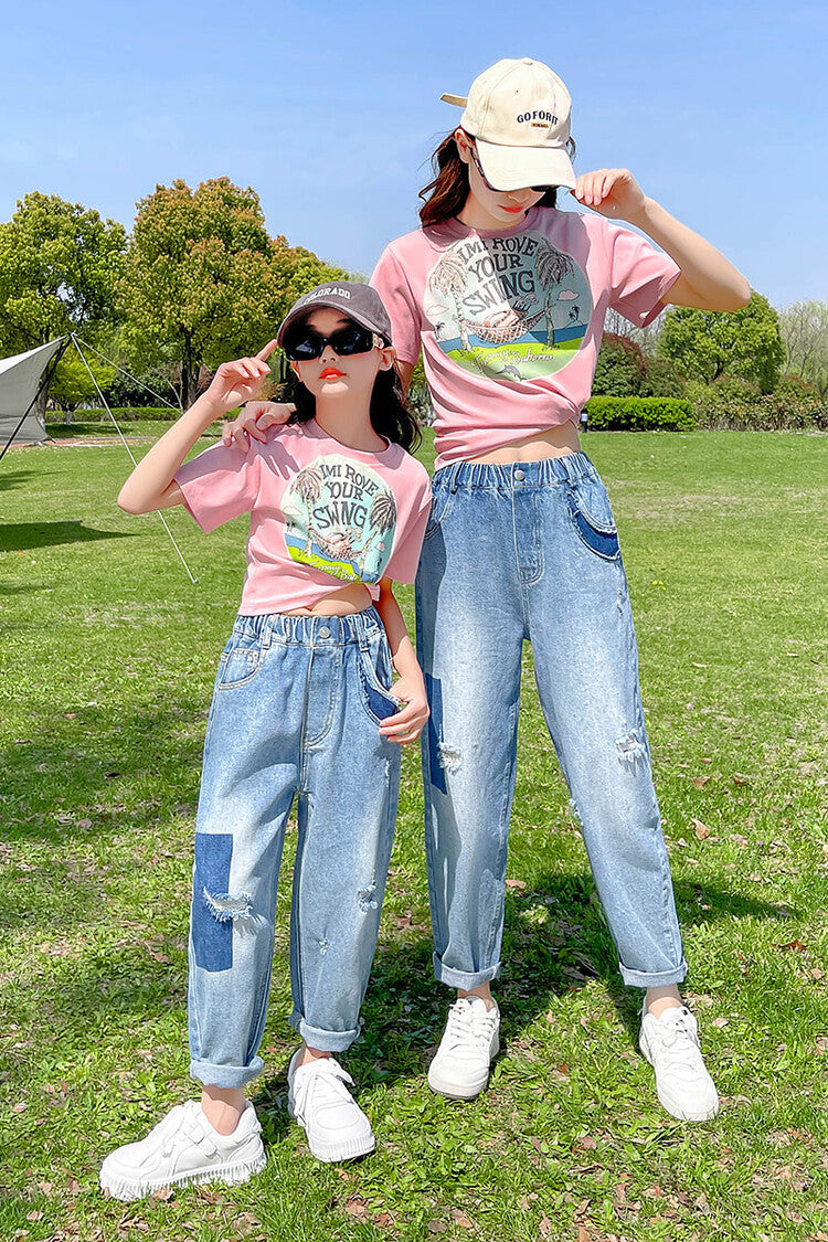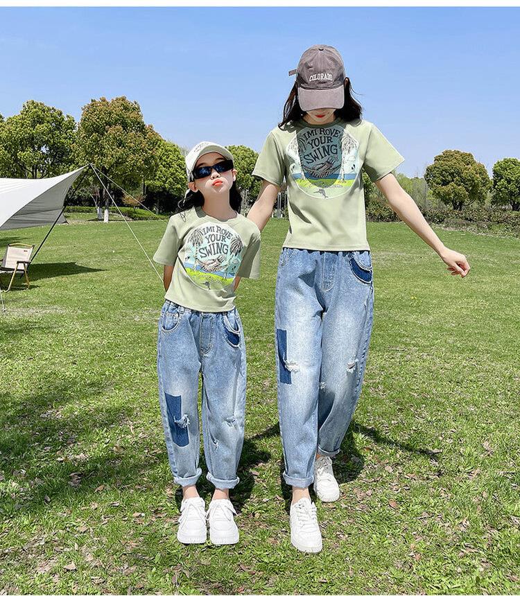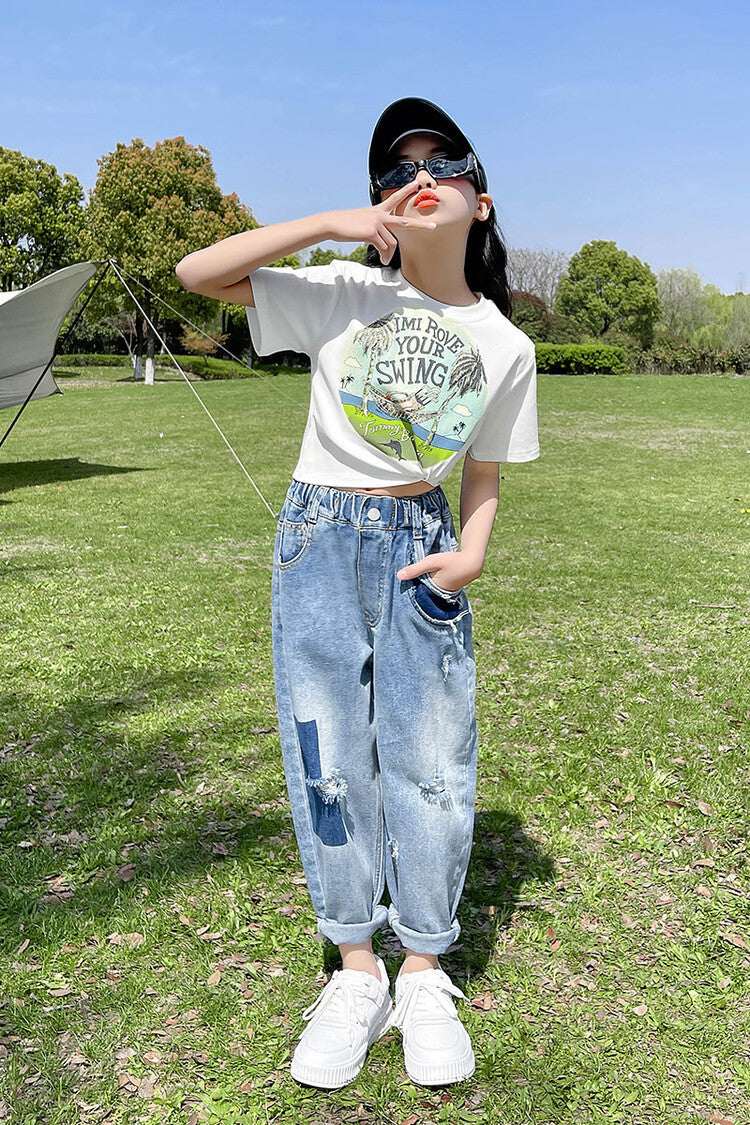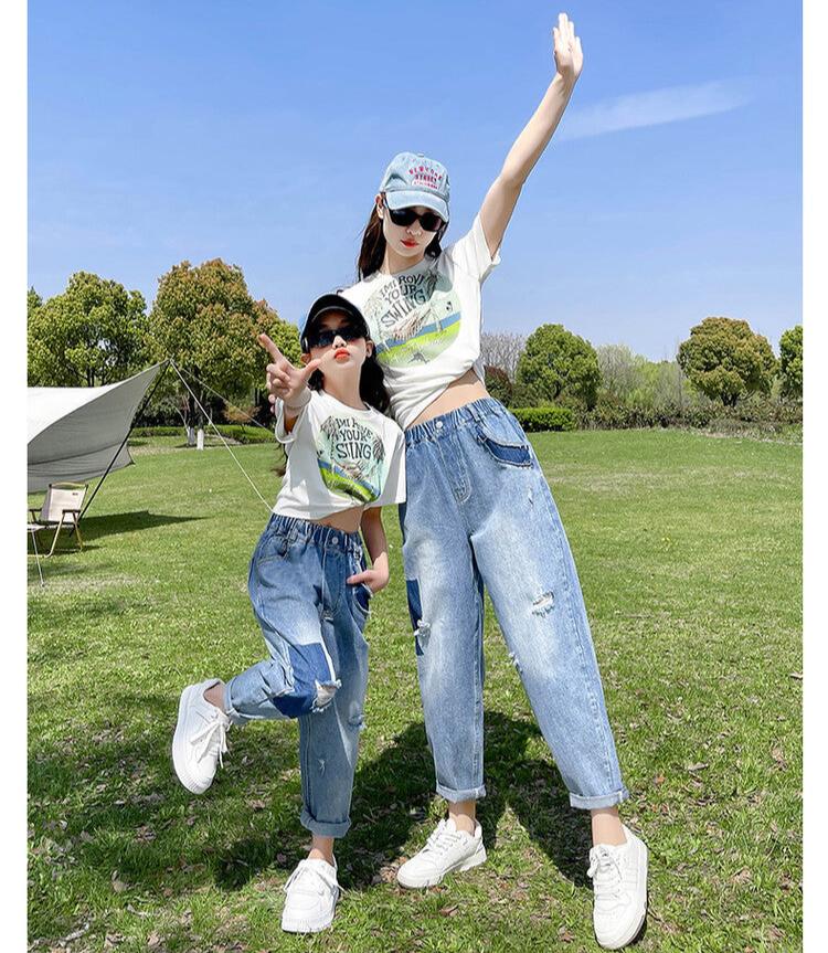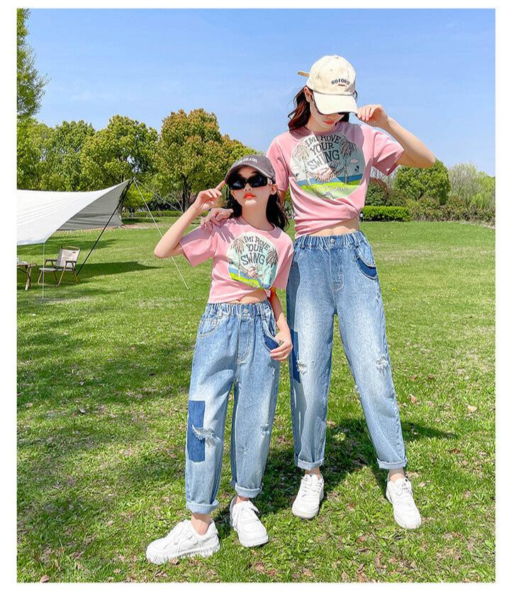 FU14042024-30 طقم بناتي قطعتين ( بلوزة قطنية + بنطلون جينز ناعم )