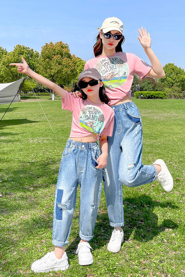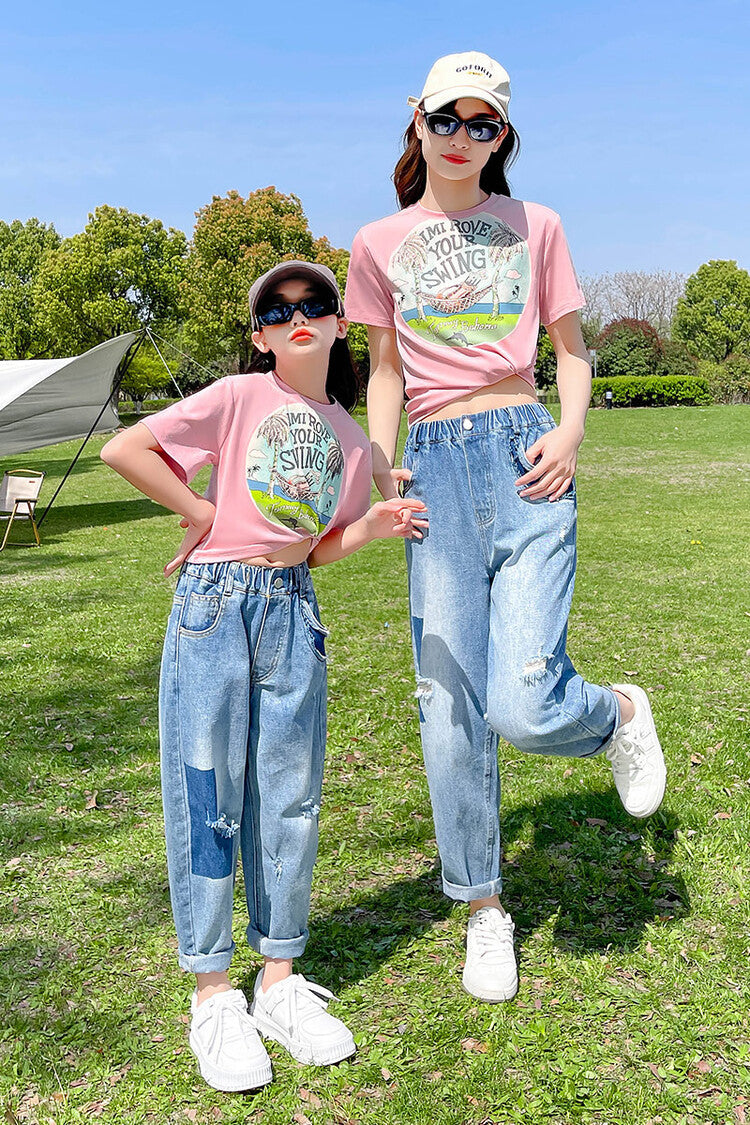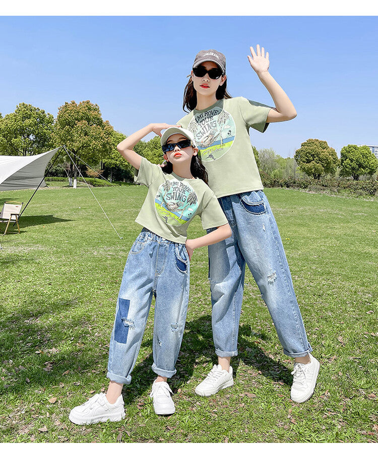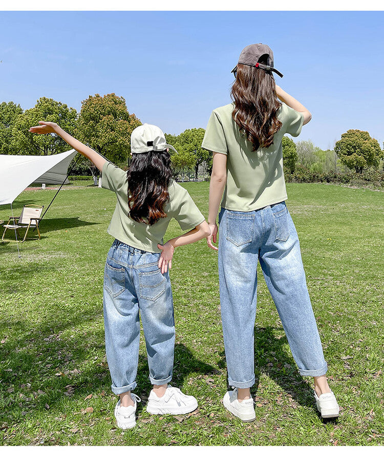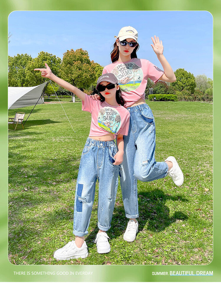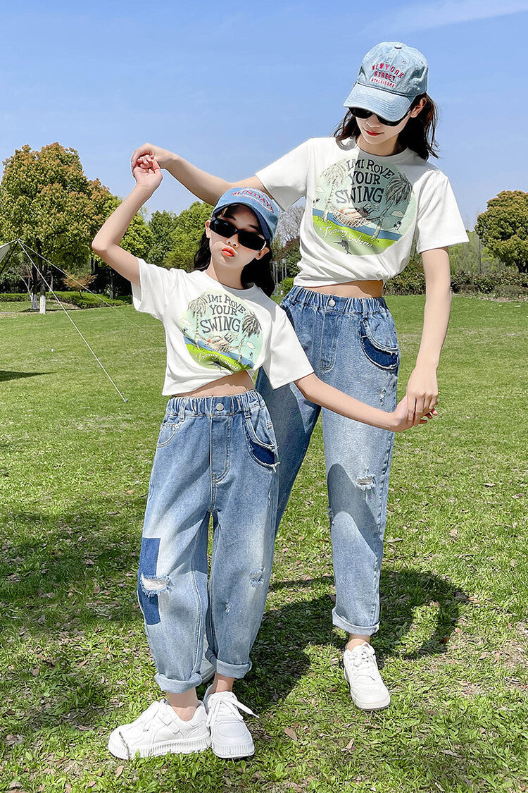 FU14042024-30 طقم بناتي قطعتين ( بلوزة قطنية + بنطلون جينز ناعم )