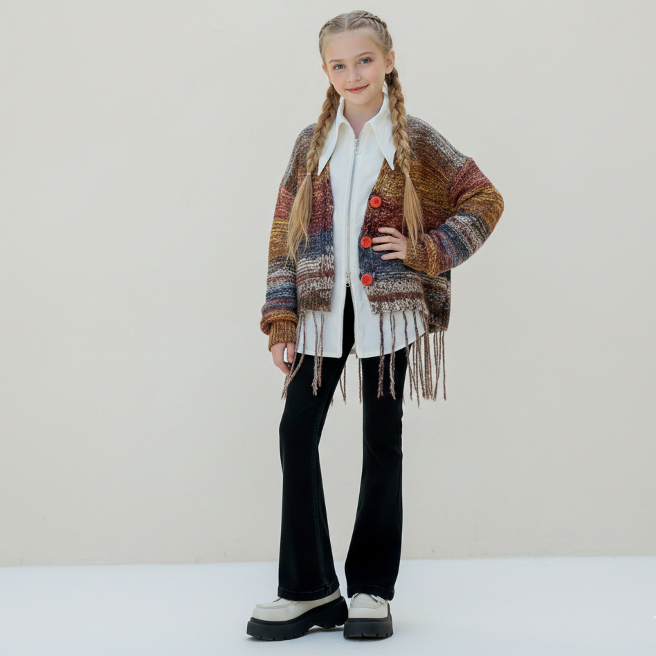 طقم بناتي 3 قطع (قميص ابيض + جكيت صوف + بنطلون جينز ) RM171223-27