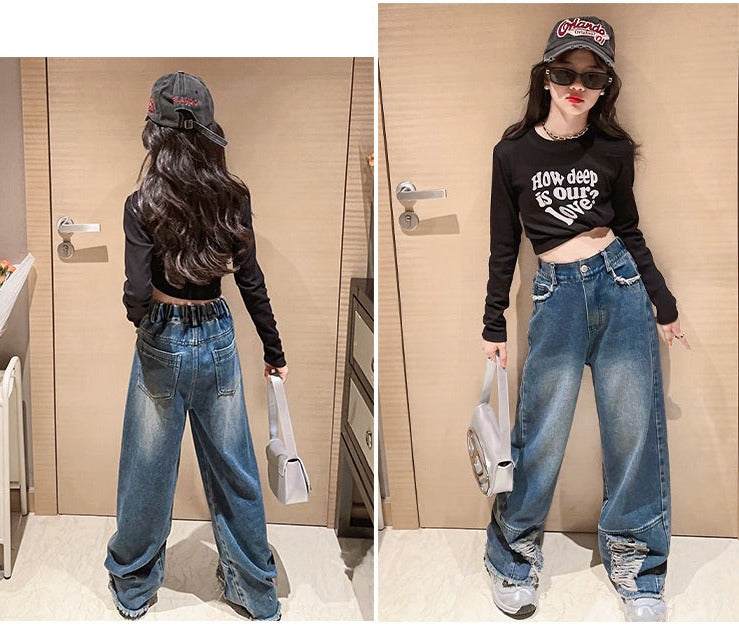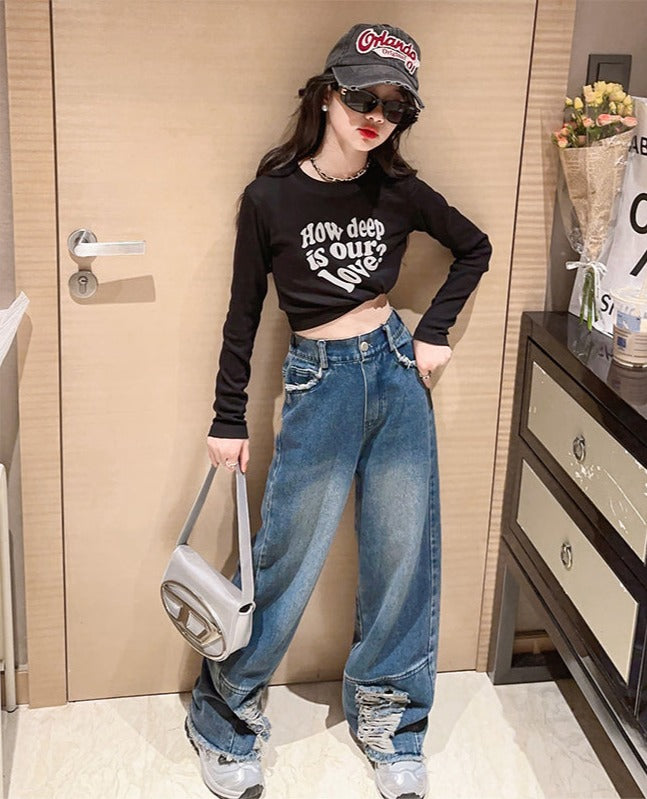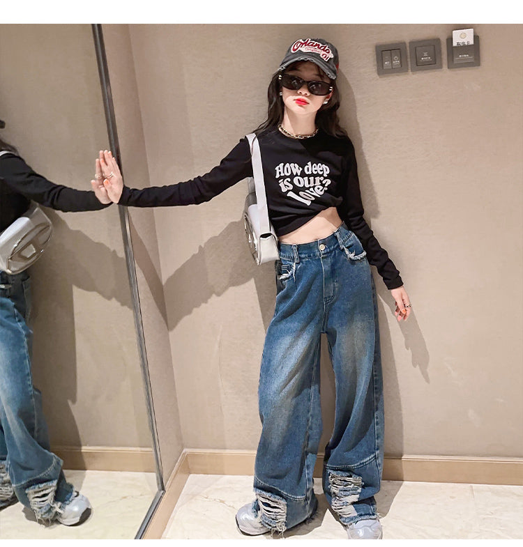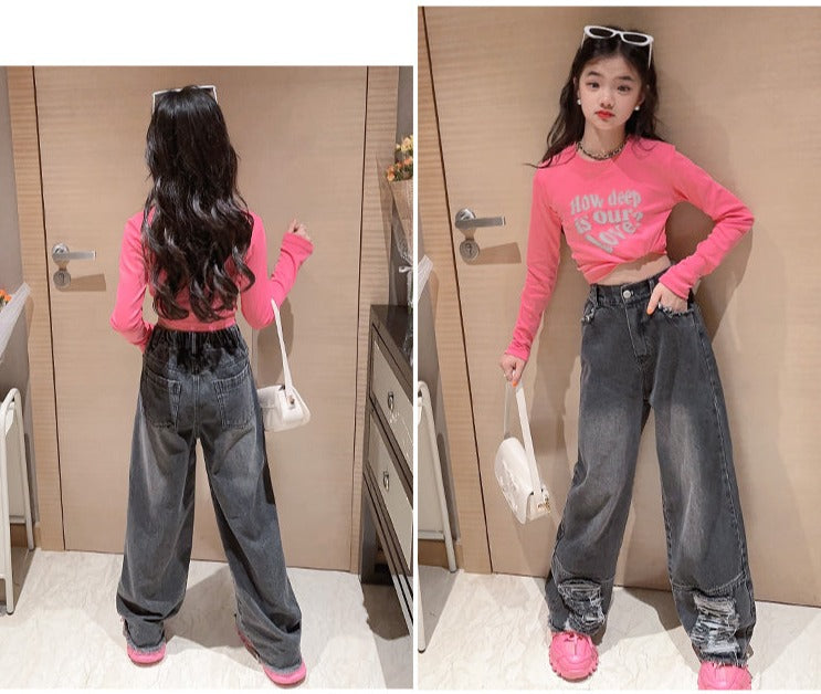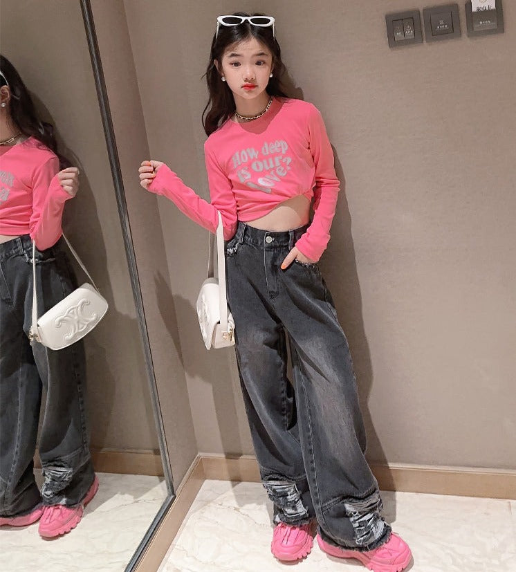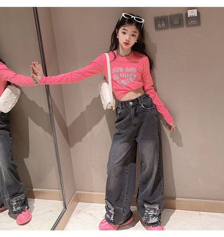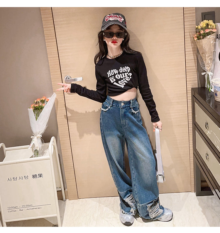 RM171223-3 طقم جينز قطعتين ( بلوزة قطنية + بنطلون جينز )