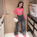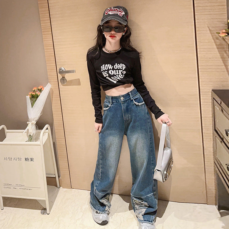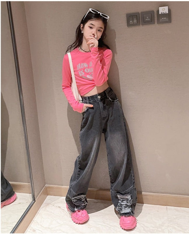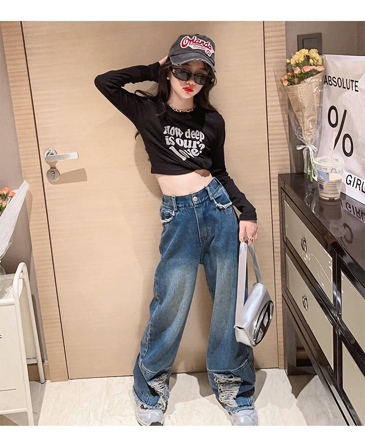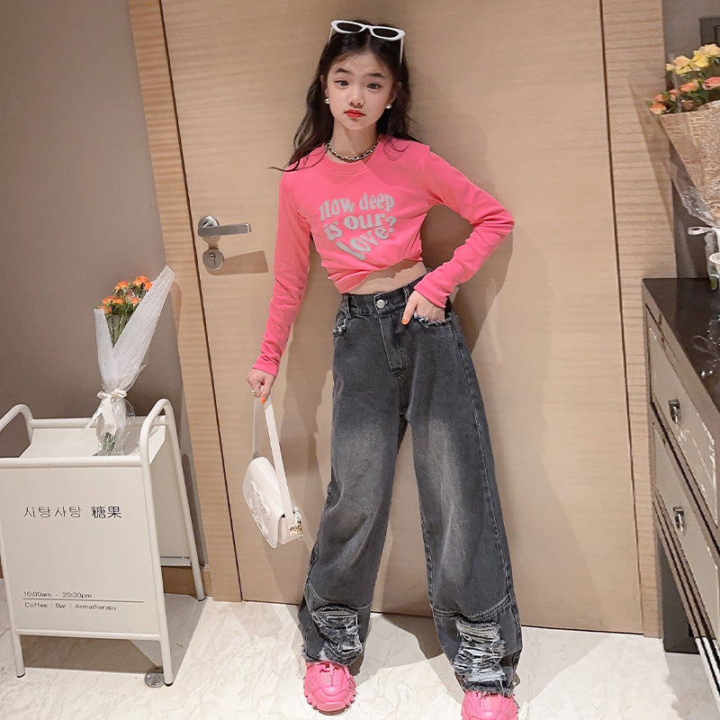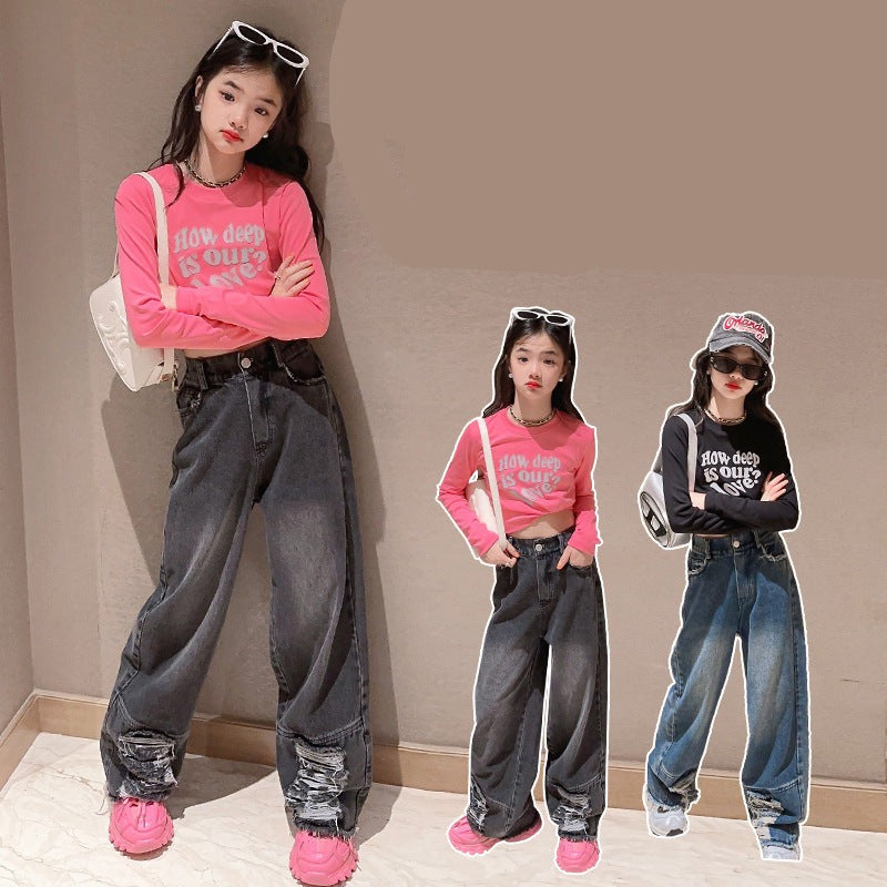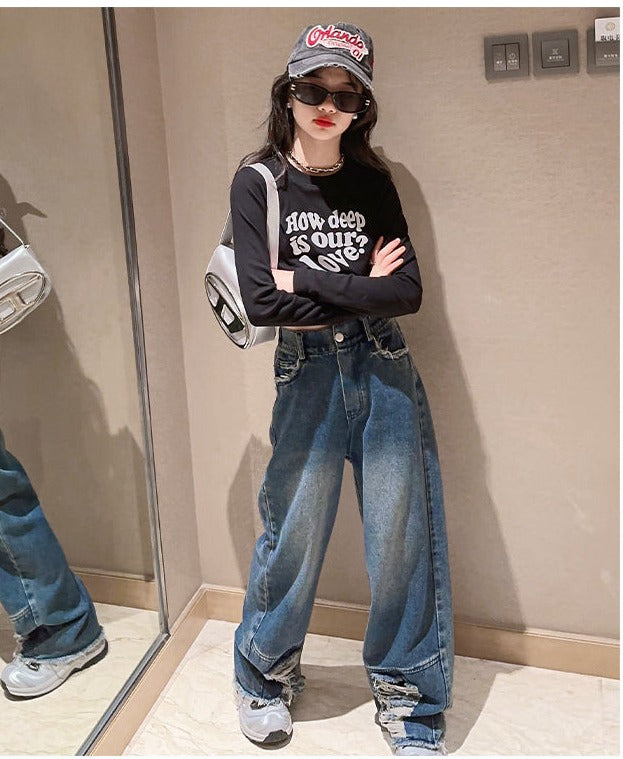 RM171223-3 طقم جينز قطعتين ( بلوزة قطنية + بنطلون جينز )