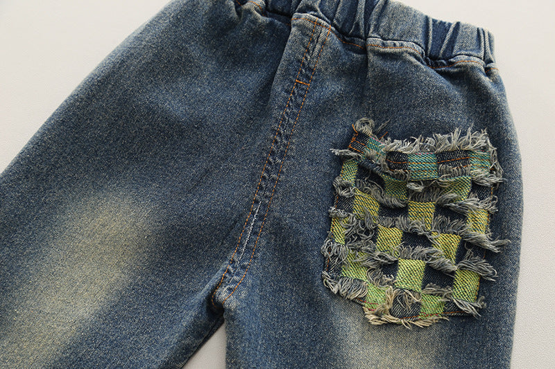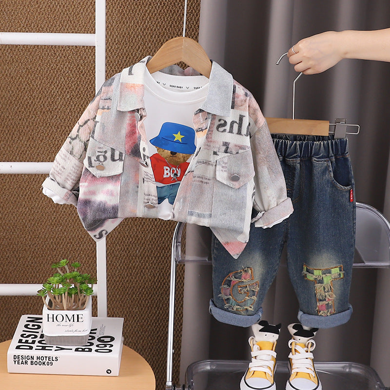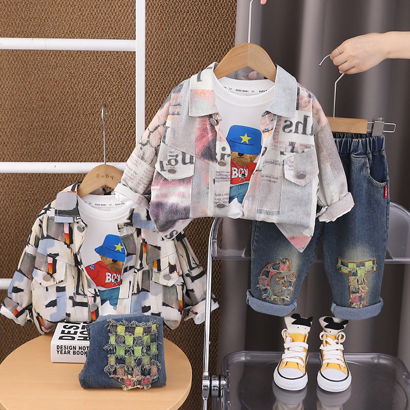 SSX220824-159 طقم 3 قطع ( بلوزة + جكيت + بنطلون جينز ) خريفي ربيعي