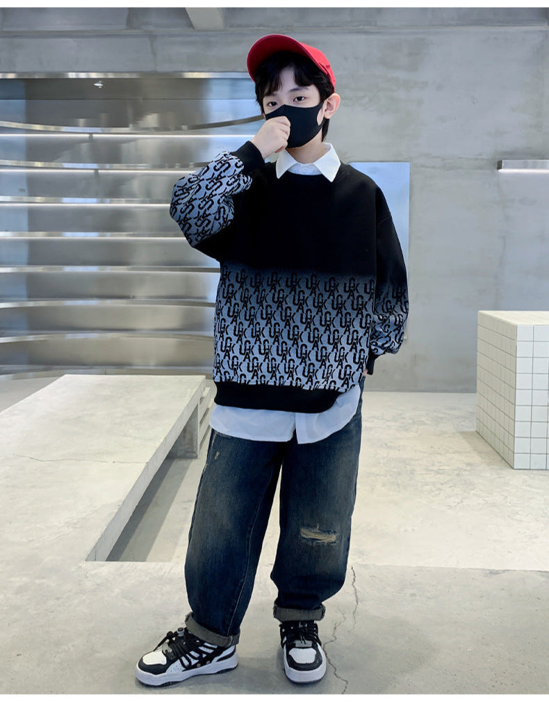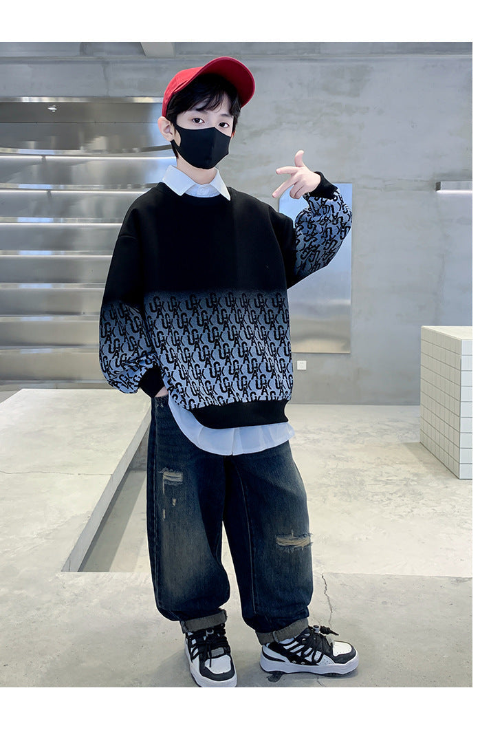 طقم ولادي قطعتين ( هودي + بنطلون جينز)